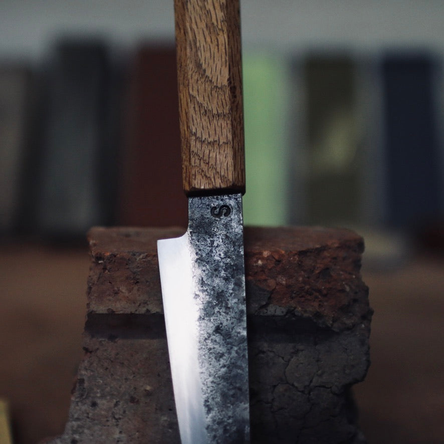 Petty 125x35mm, hand forged form 115Cr3 in Sheffield. Carbon steel blade.