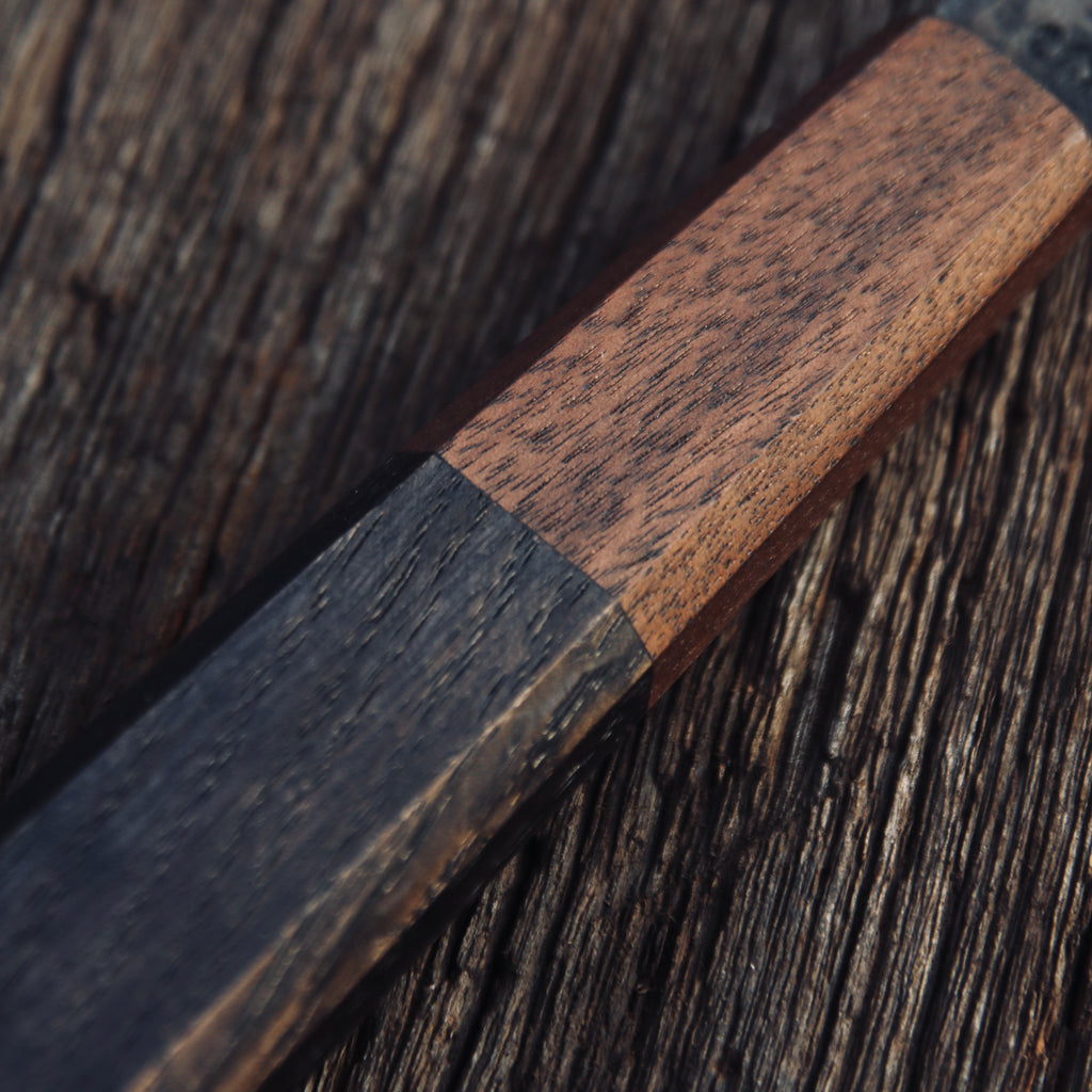 Wa handle made from American Black walnut ferrule and ebonised English Oak, 150mm length.