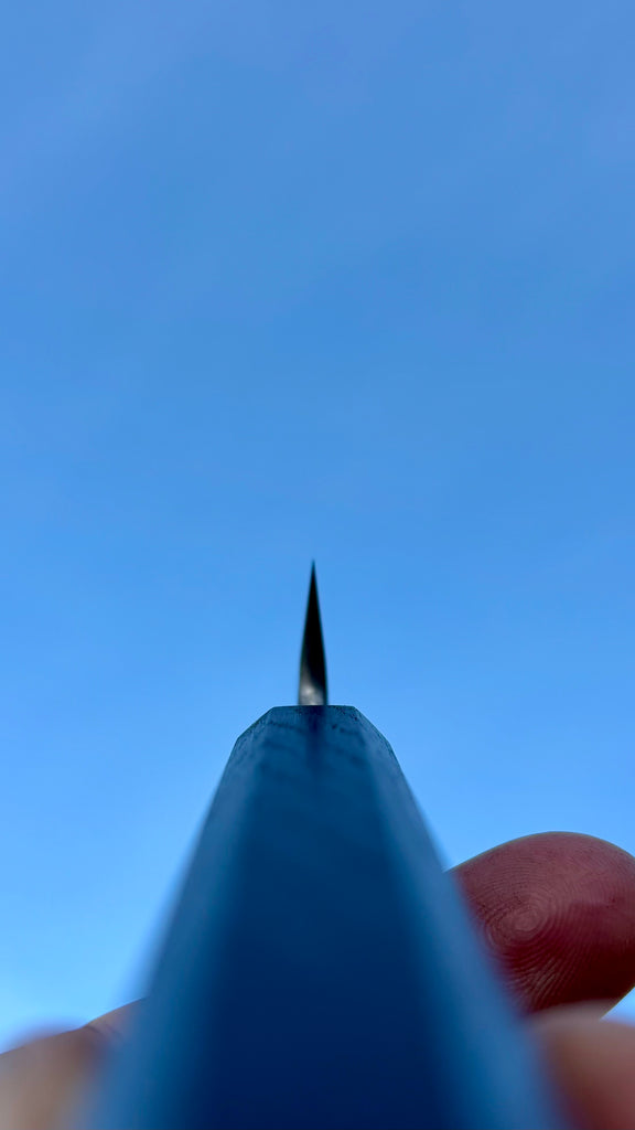 When stated, my knives bevels are ground and polished with Japanese whetstones. This allow an easy maintenance at home. For Sharpening service please contact Scott from www.sheffieldknifesharpening.com