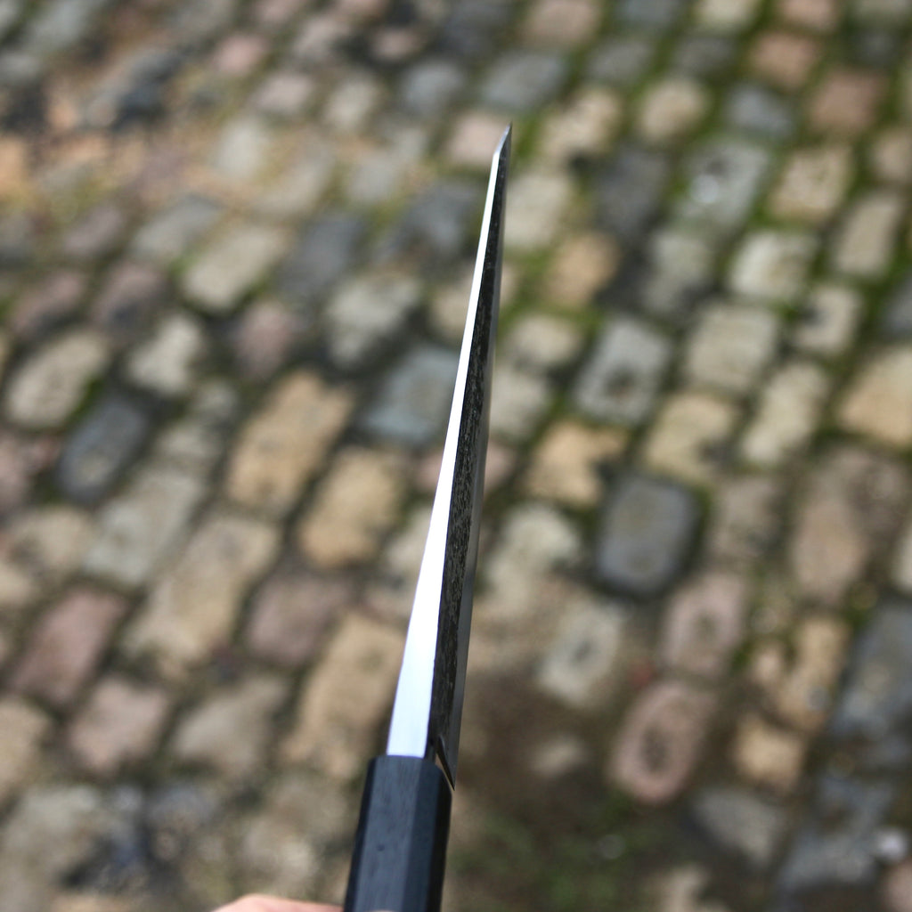 The knife's bevels are ground using whetstones. This allow an easy maintenance at home. For Sharpening service please contact Scott from www.sheffieldknifesharpening.com