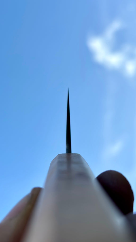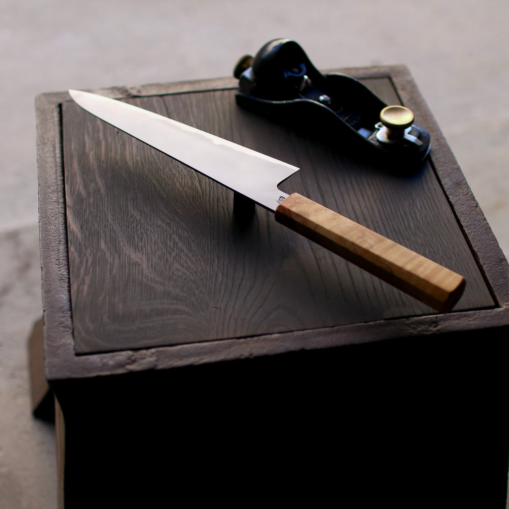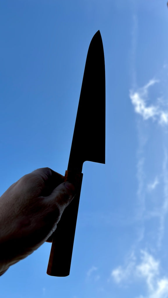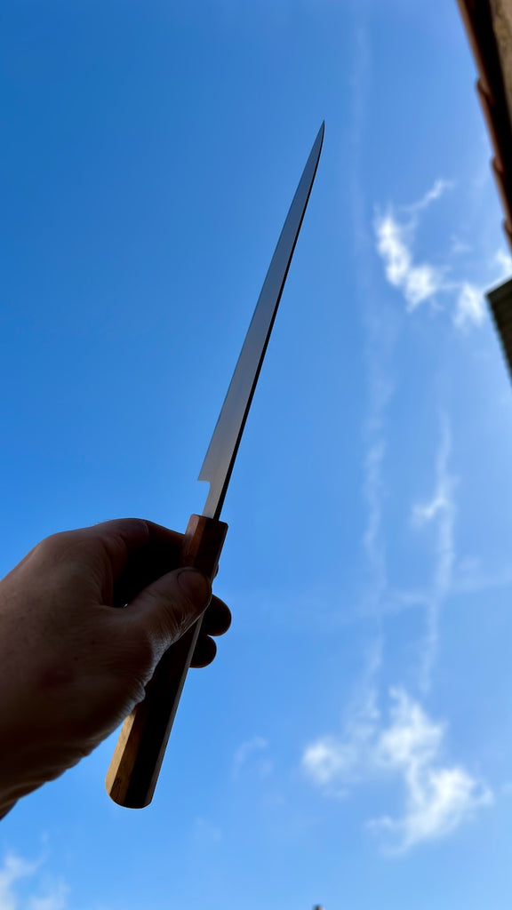 When stated, my knives bevels are ground and polished with Japanese whetstones. This allow an easy maintenance at home. For Sharpening service please contact Scott from www.sheffieldknifesharpening.com