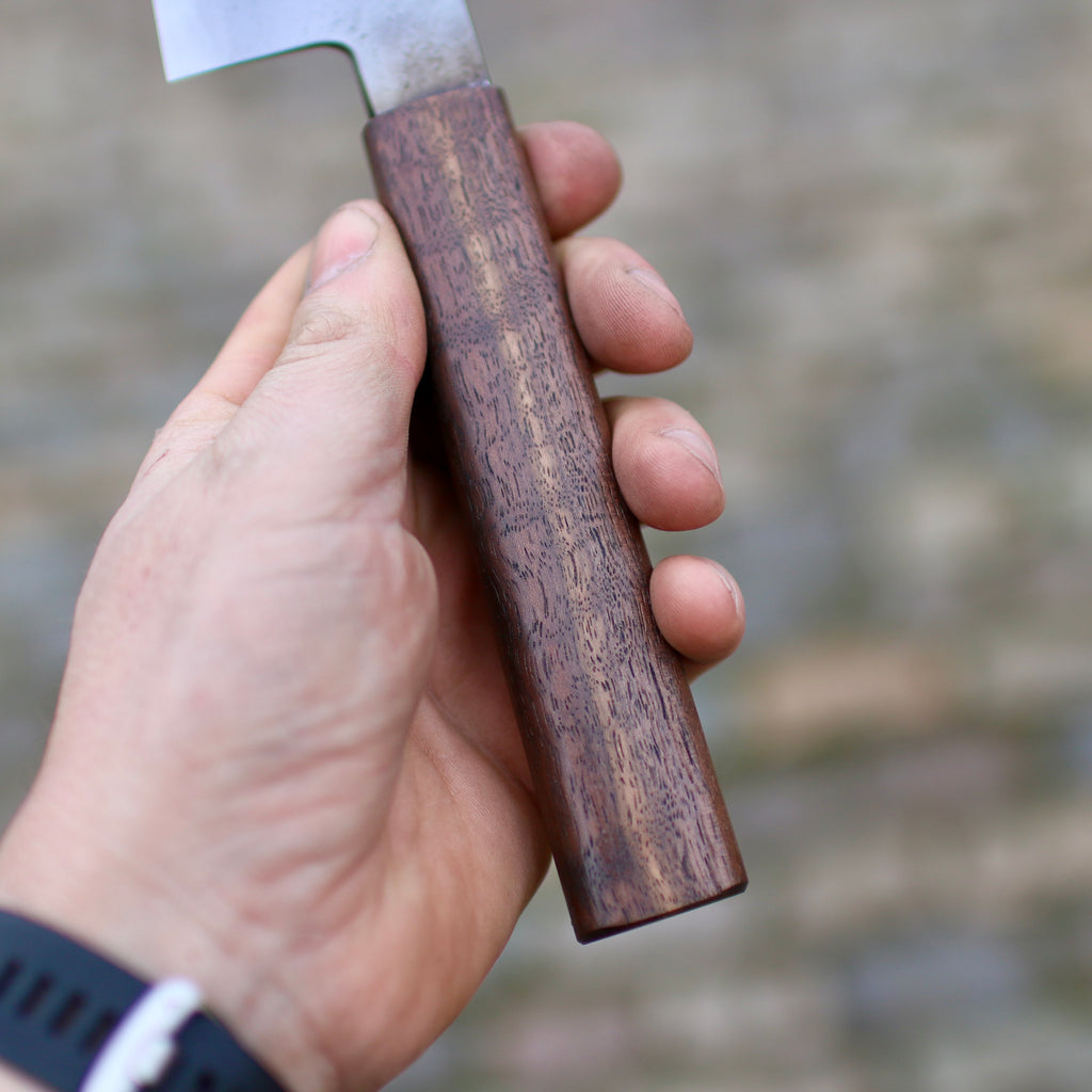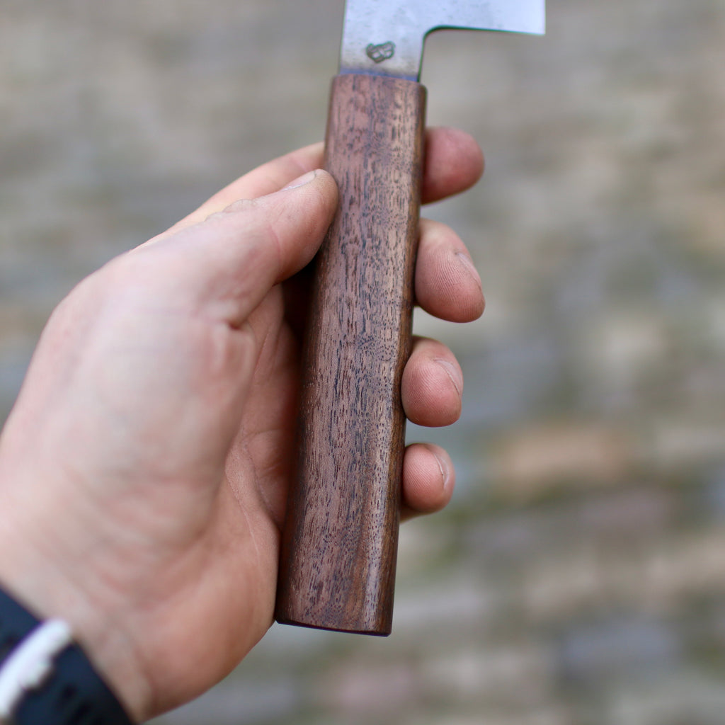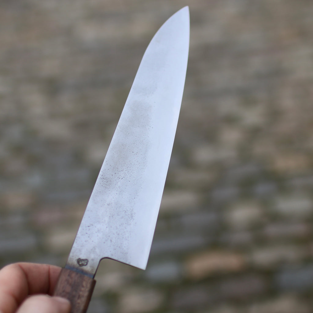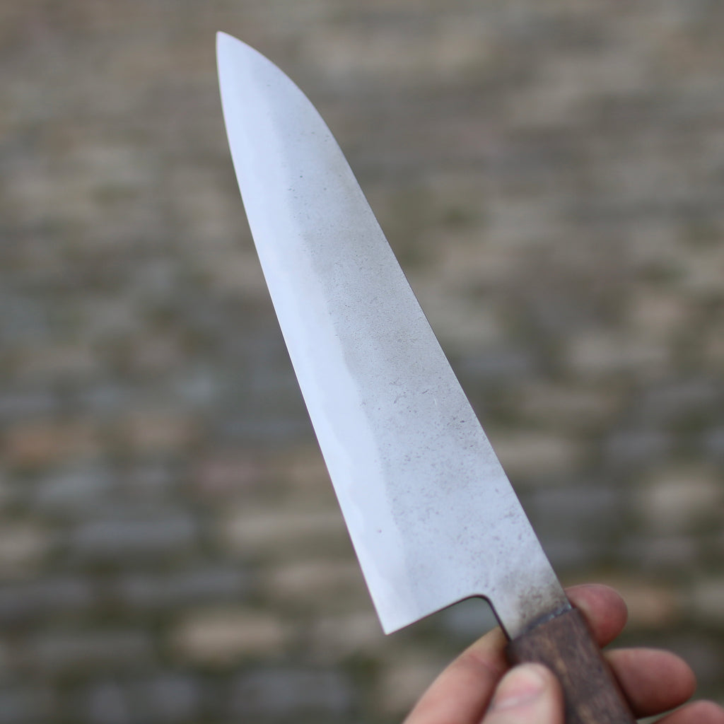 When stated, my knives bevels are ground and polished with Japanese whetstones. This allow an easy maintenance at home. For Sharpening service please contact Scott from www.sheffieldknifesharpening.com
