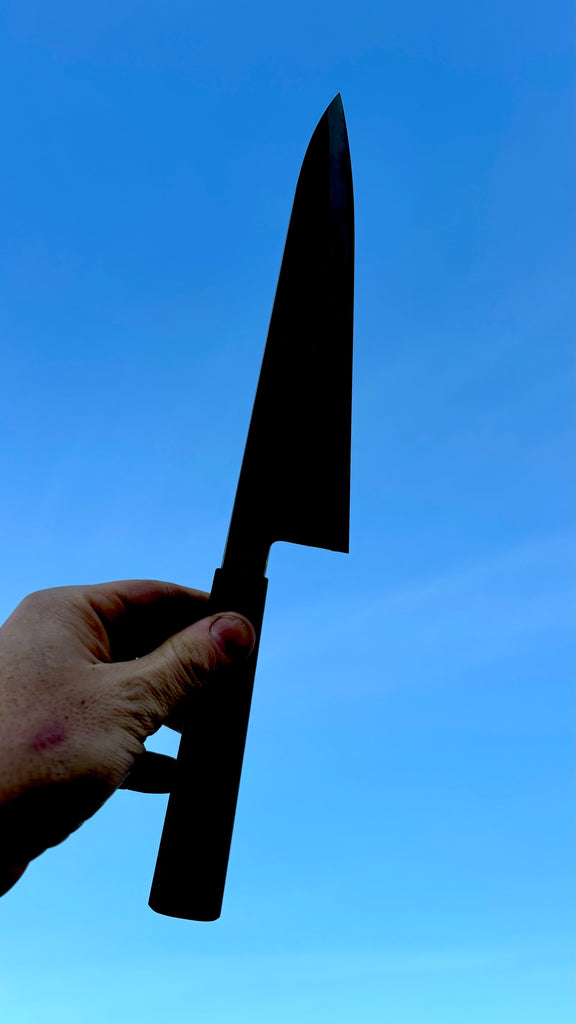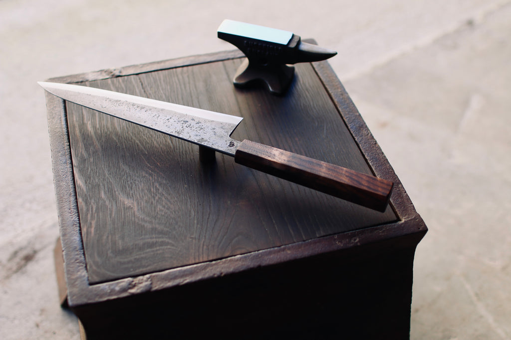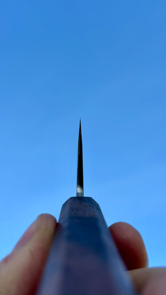 When stated, my knives bevels are ground and polished with Japanese whetstones. This allow an easy maintenance at home. For Sharpening service please contact Scott from www.sheffieldknifesharpening.com