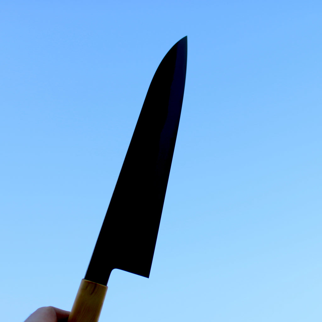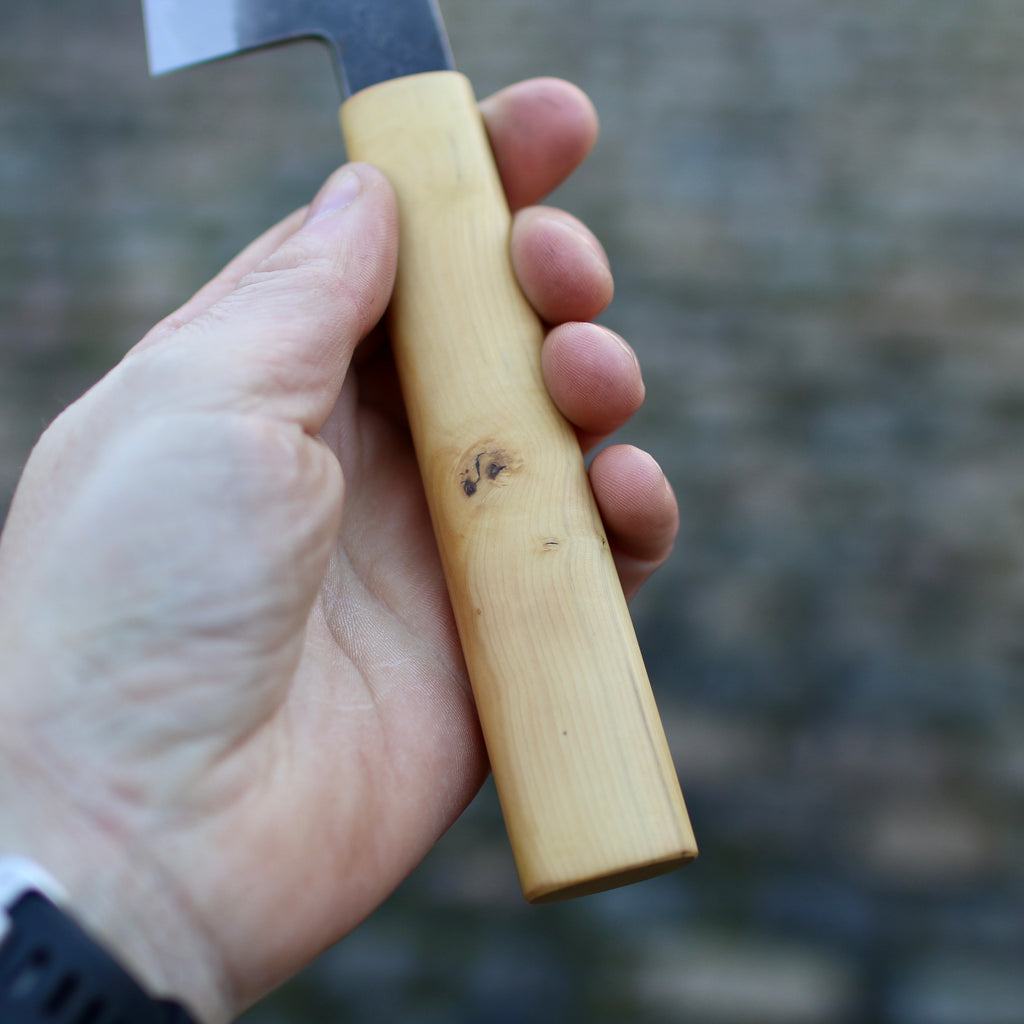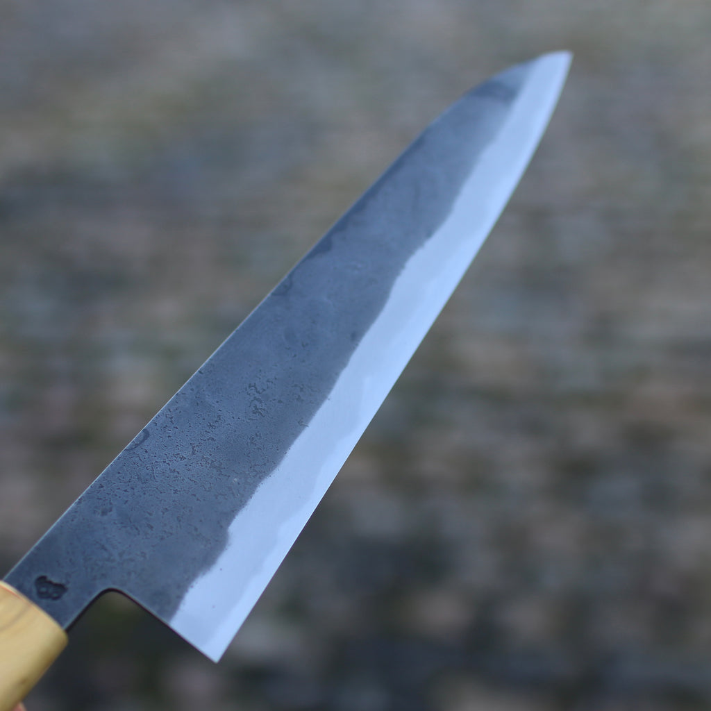 When stated, my knives bevels are ground and polished with Japanese whetstones. This allow an easy maintenance at home. For Sharpening service please contact Scott from www.sheffieldknifesharpening.com