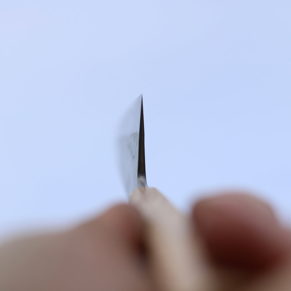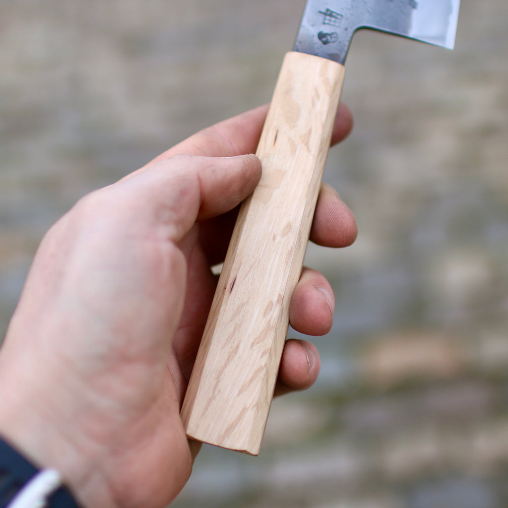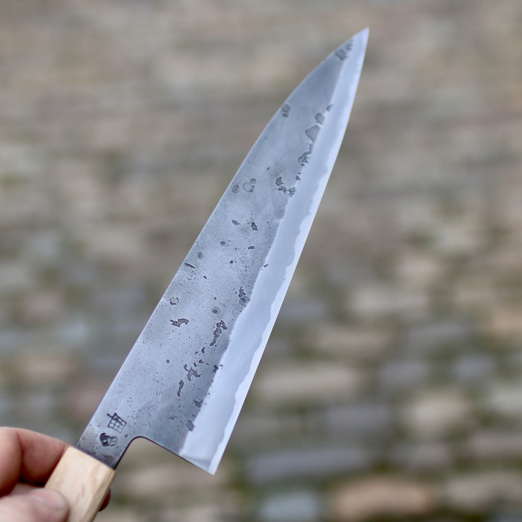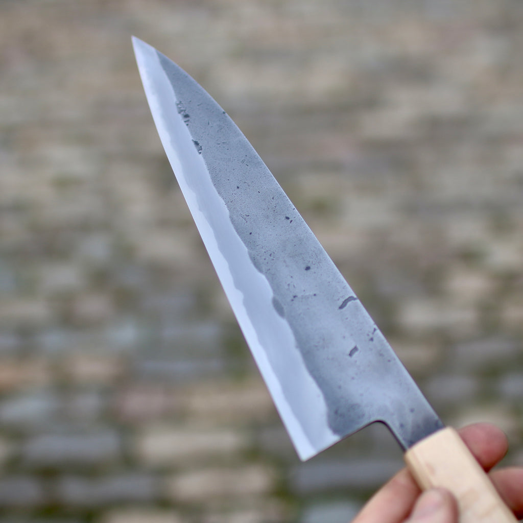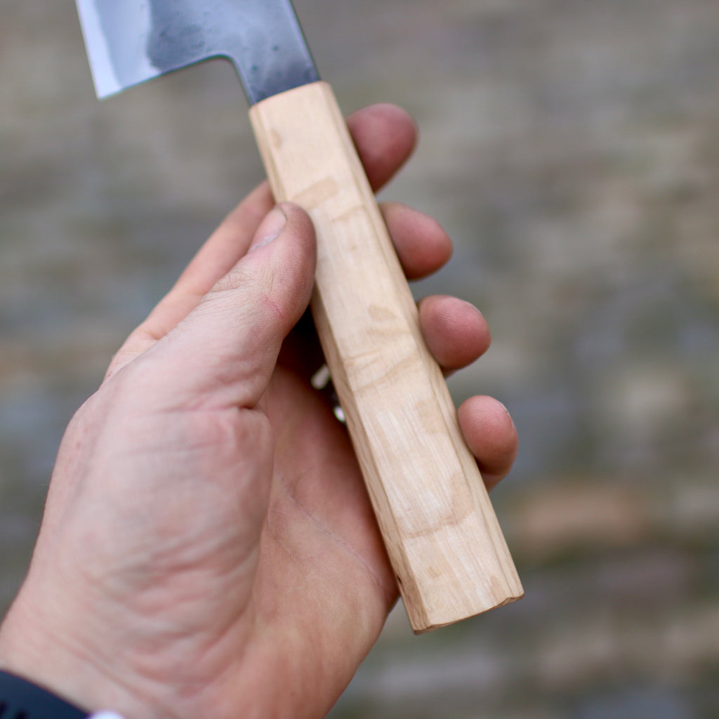 When stated, my knives bevels are ground and polished with Japanese whetstones. This allow an easy maintenance at home. For Sharpening service please contact Scott from www.sheffieldknifesharpening.com