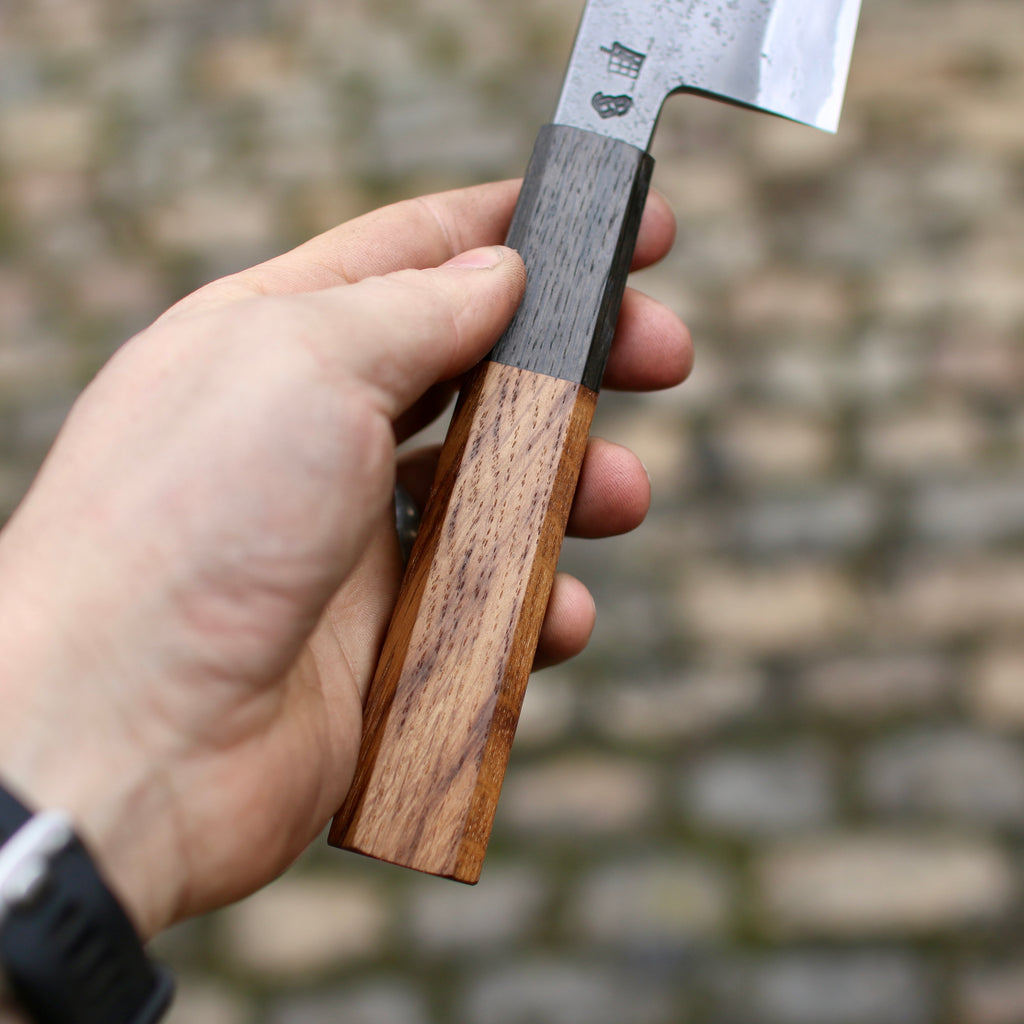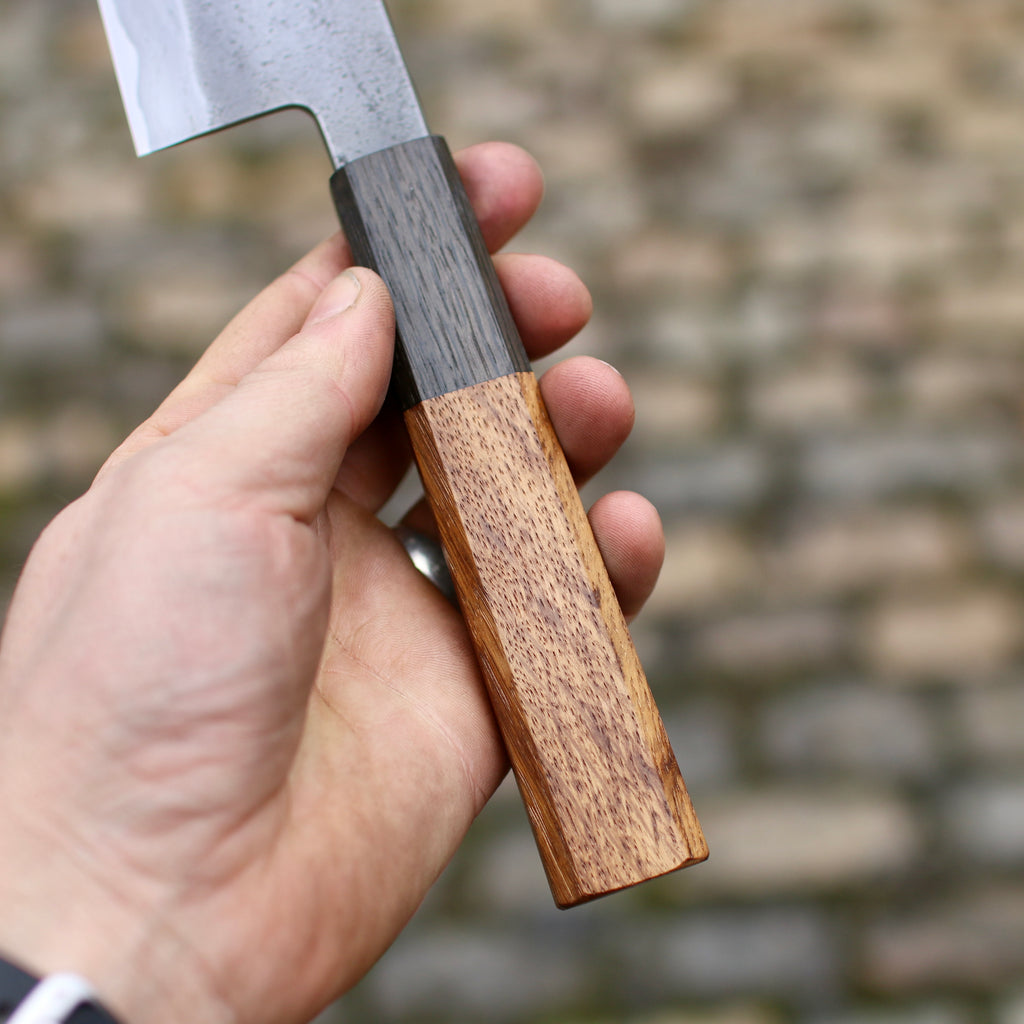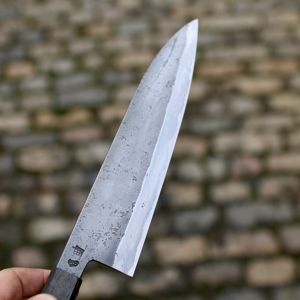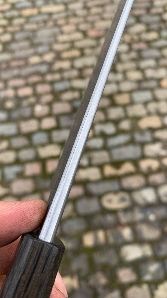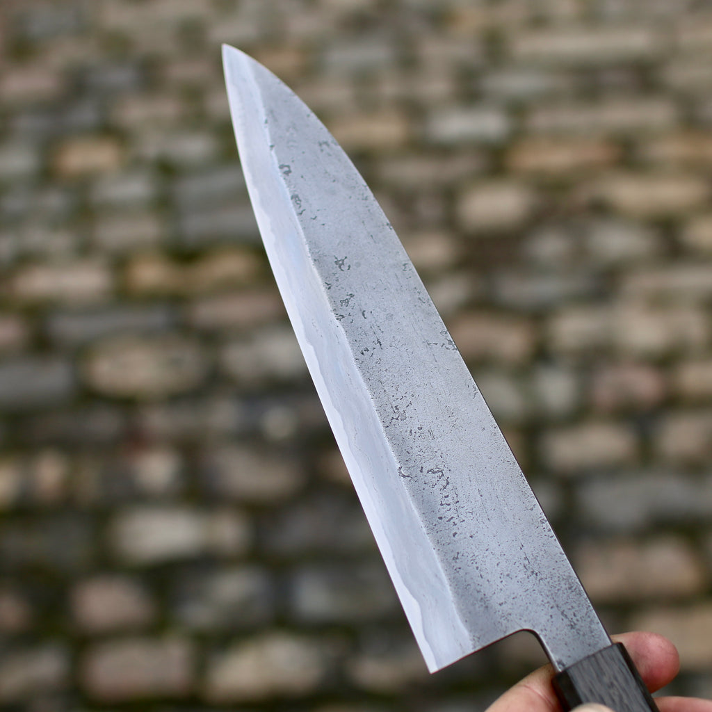 When stated, my knives bevels are ground and polished with Japanese whetstones. This allow an easy maintenance at home. For Sharpening service please contact Scott from www.sheffieldknifesharpening.com