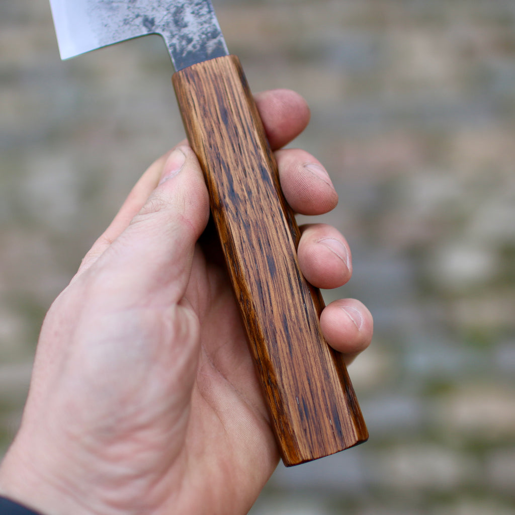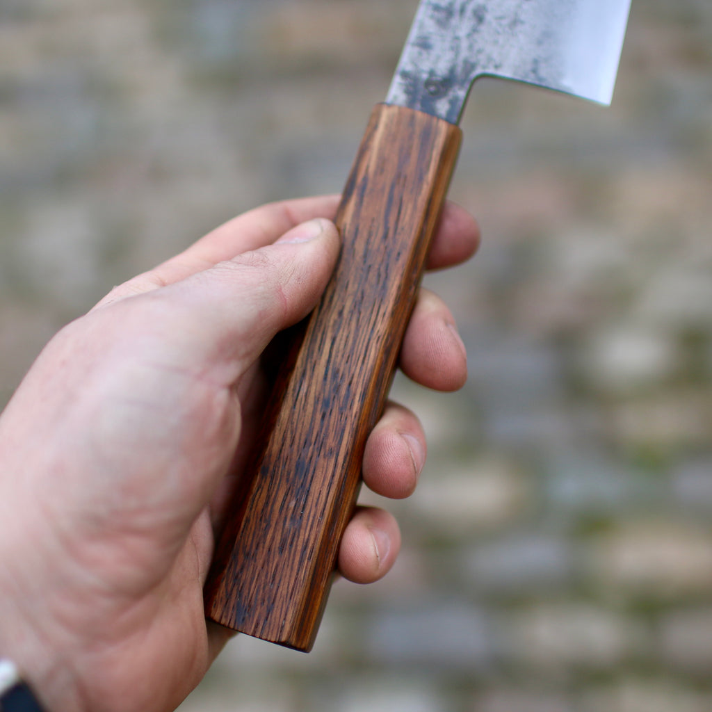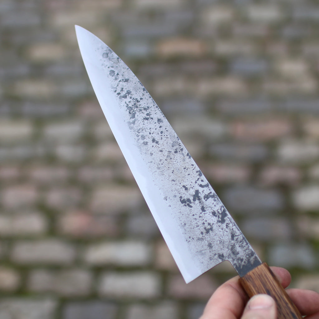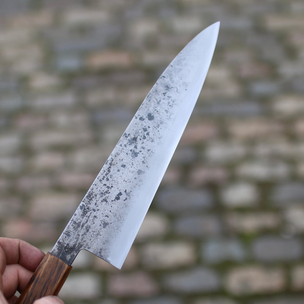 When stated, my knives bevels are ground and polished with Japanese whetstones. This allow an easy maintenance at home. For Sharpening service please contact Scott from www.sheffieldknifesharpening.com