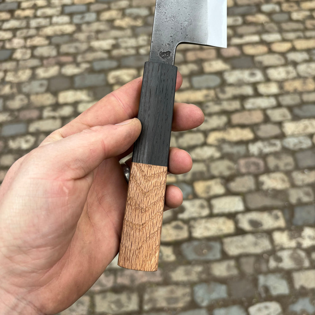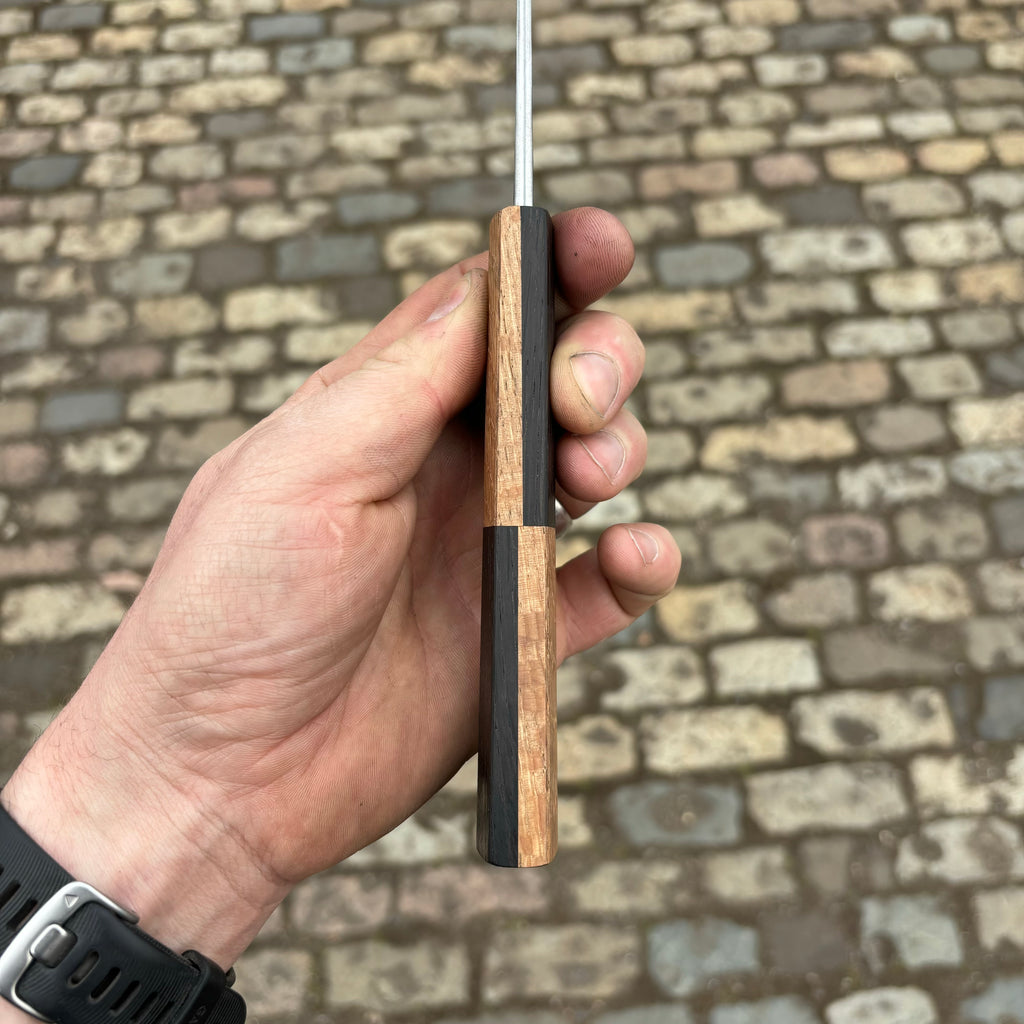 When stated, my knives bevels are ground and polished with Japanese whetstones. This allow an easy maintenance at home. For Sharpening service please contact Scott from www.sheffieldknifesharpening.com