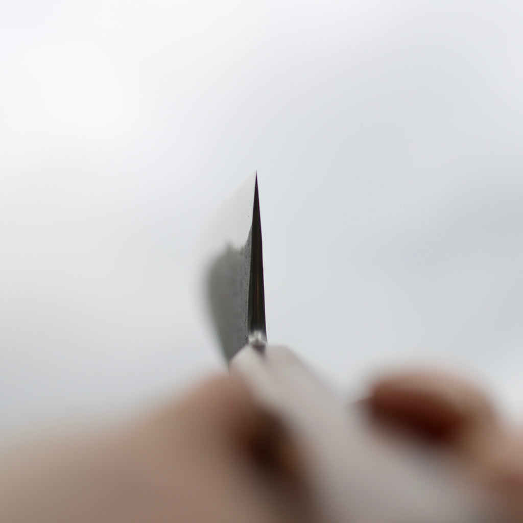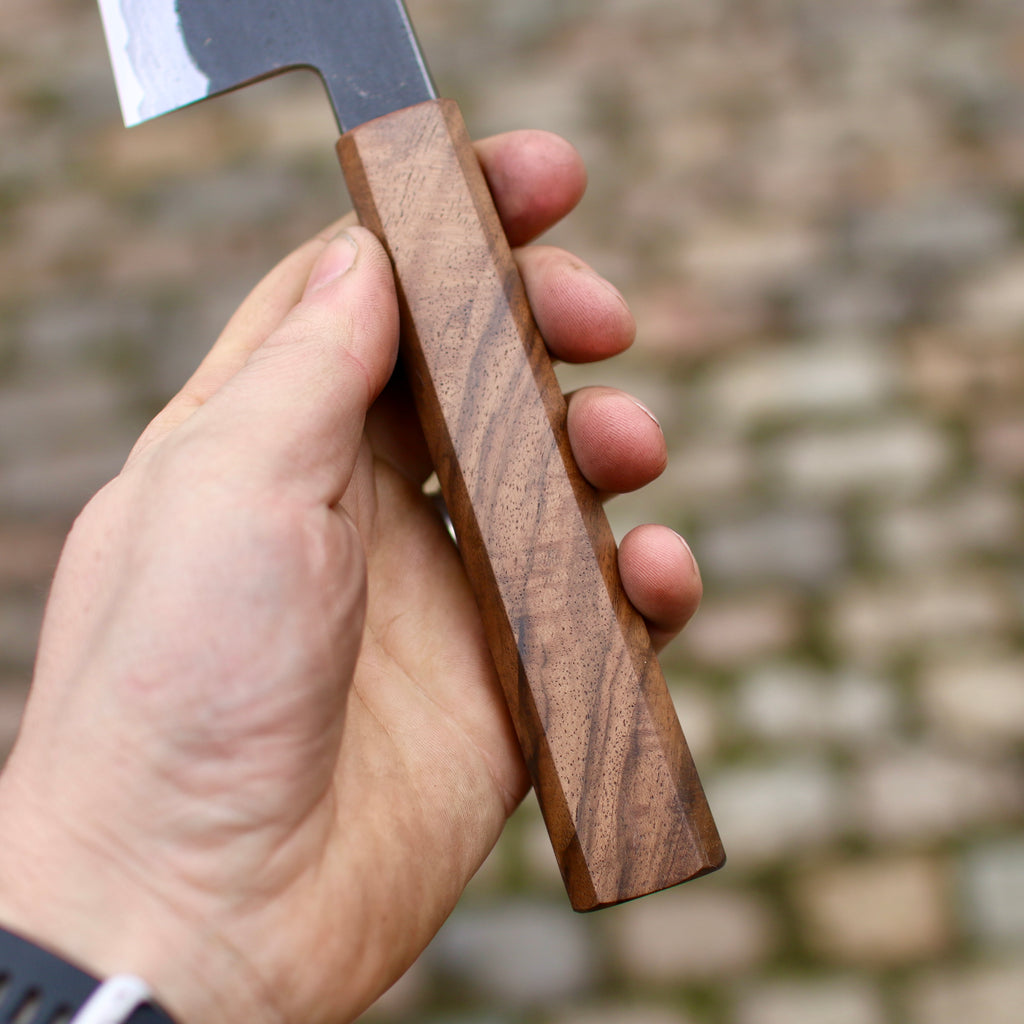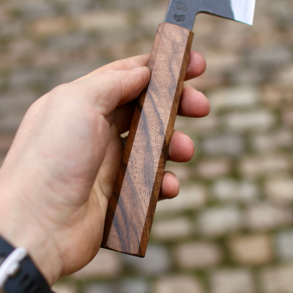 When stated, my knives bevels are ground and polished with Japanese whetstones. This allow an easy maintenance at home. For Sharpening service please contact Scott from www.sheffieldknifesharpening.com