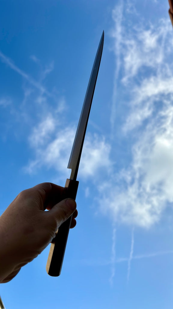 When stated, my knives bevels are ground and polished with Japanese whetstones. This allow an easy maintenance at home. For Sharpening service please contact Scott from www.sheffieldknifesharpening.com