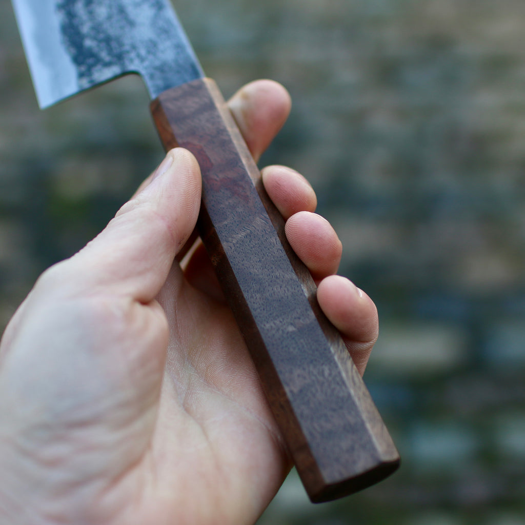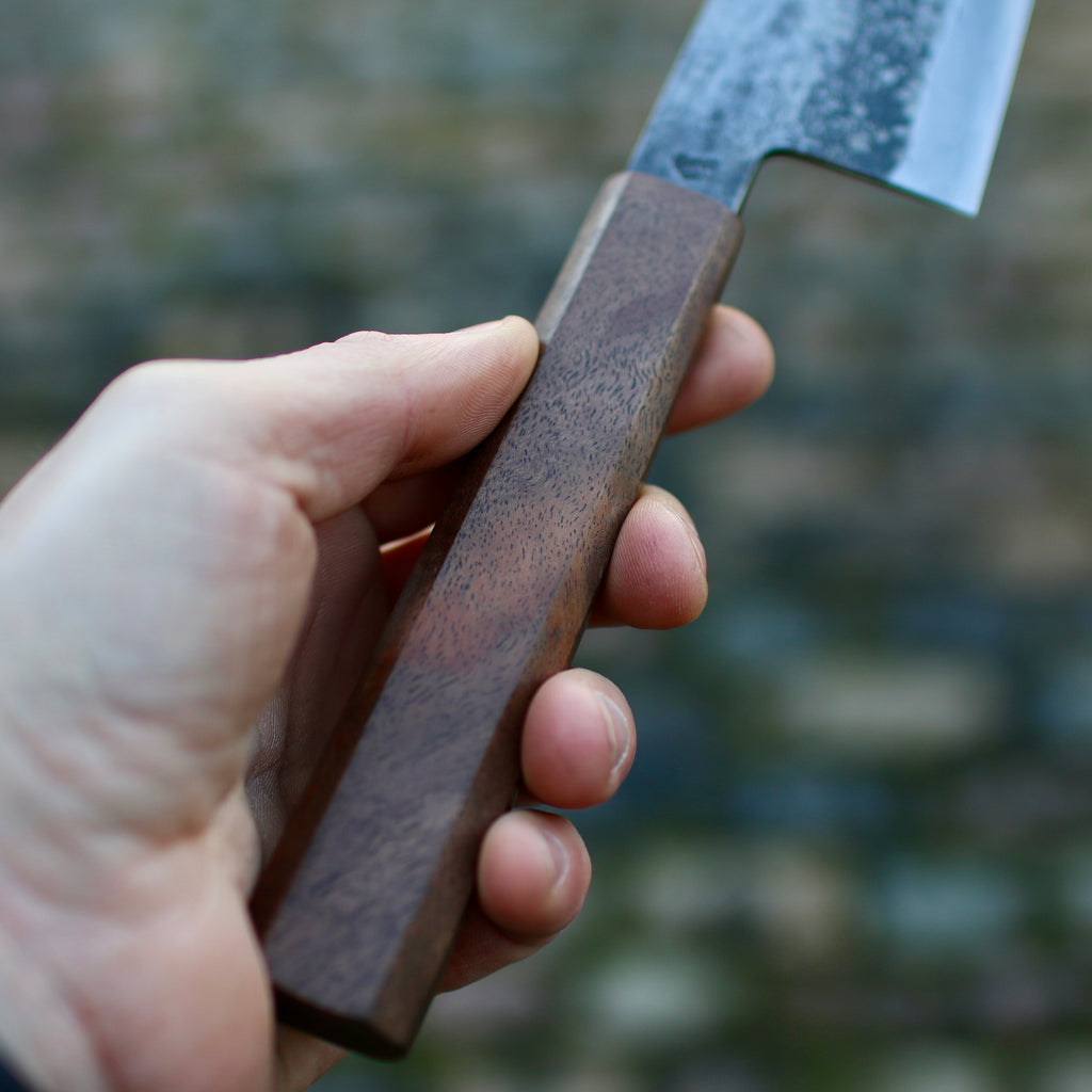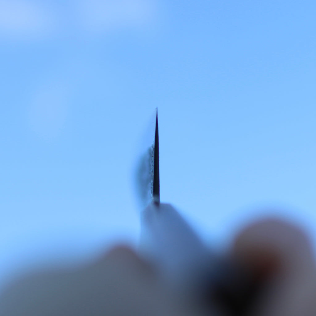 When stated, my knives bevels are ground and polished with Japanese whetstones. This allow an easy maintenance at home. For Sharpening service please contact Scott from www.sheffieldknifesharpening.com