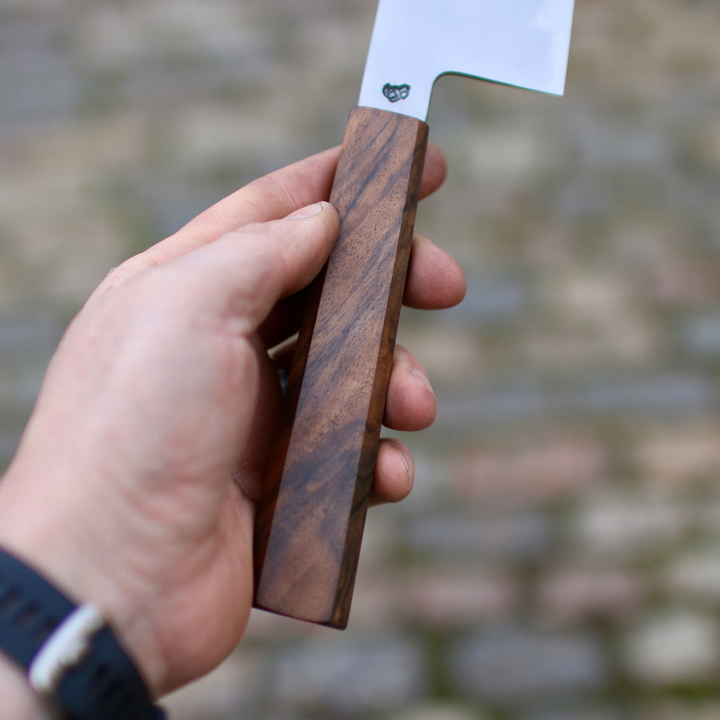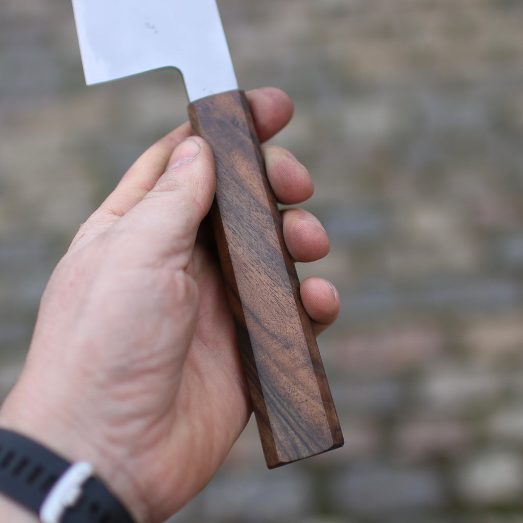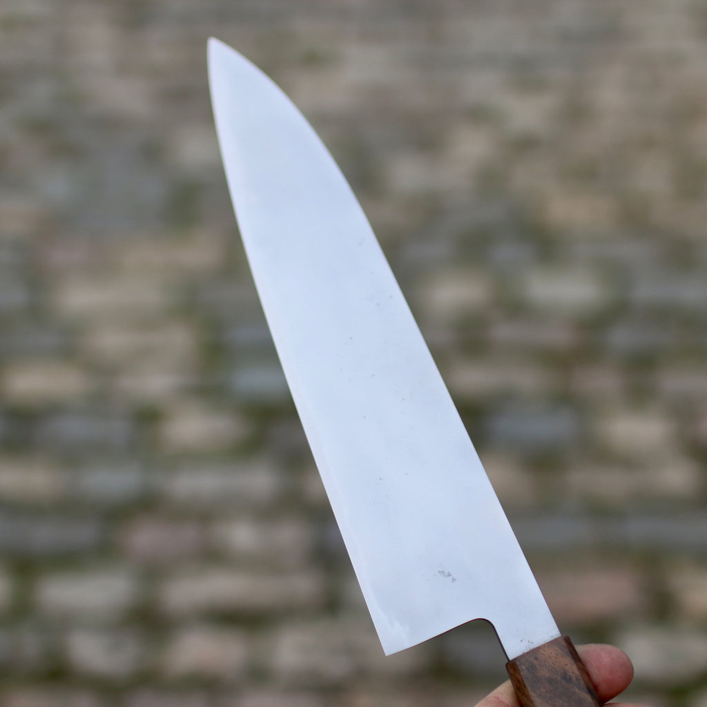 When stated, my knives bevels are ground and polished with Japanese whetstones. This allow an easy maintenance at home. For Sharpening service please contact Scott from www.sheffieldknifesharpening.com