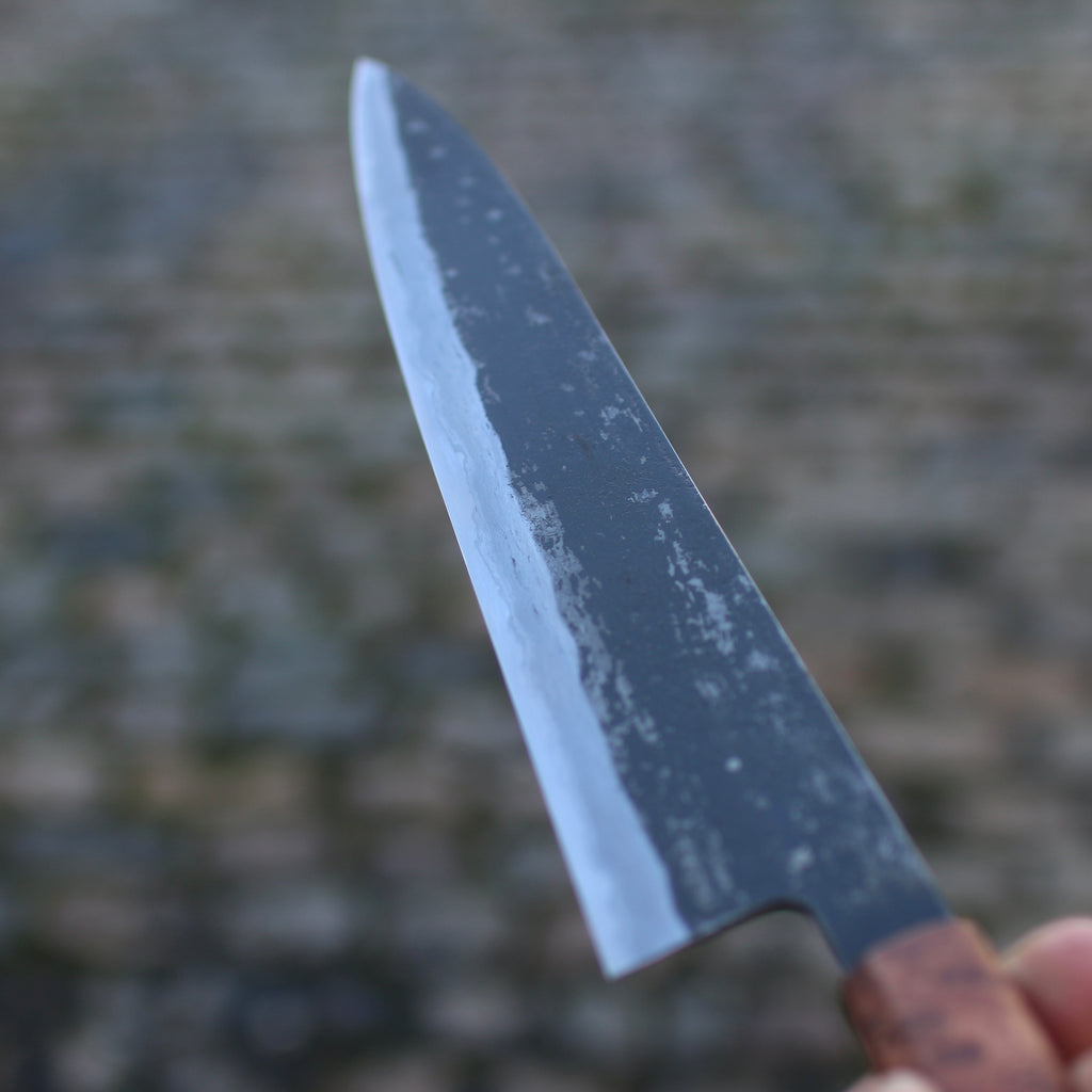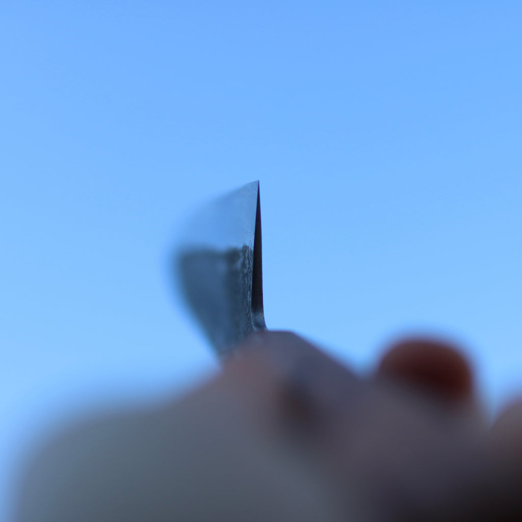 When stated, my knives bevels are ground and polished with Japanese whetstones. This allow an easy maintenance at home. For Sharpening service please contact Scott from www.sheffieldknifesharpening.com