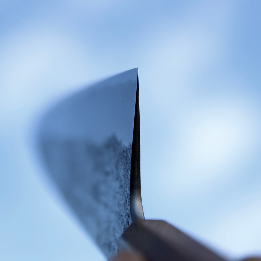 When stated, my knives bevels are ground and polished with Japanese whetstones. This allow an easy maintenance at home. For Sharpening service please contact Scott from www.sheffieldknifesharpening.com