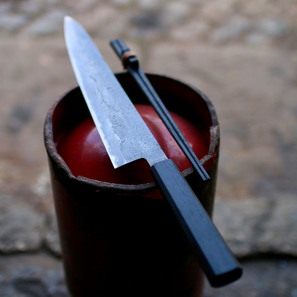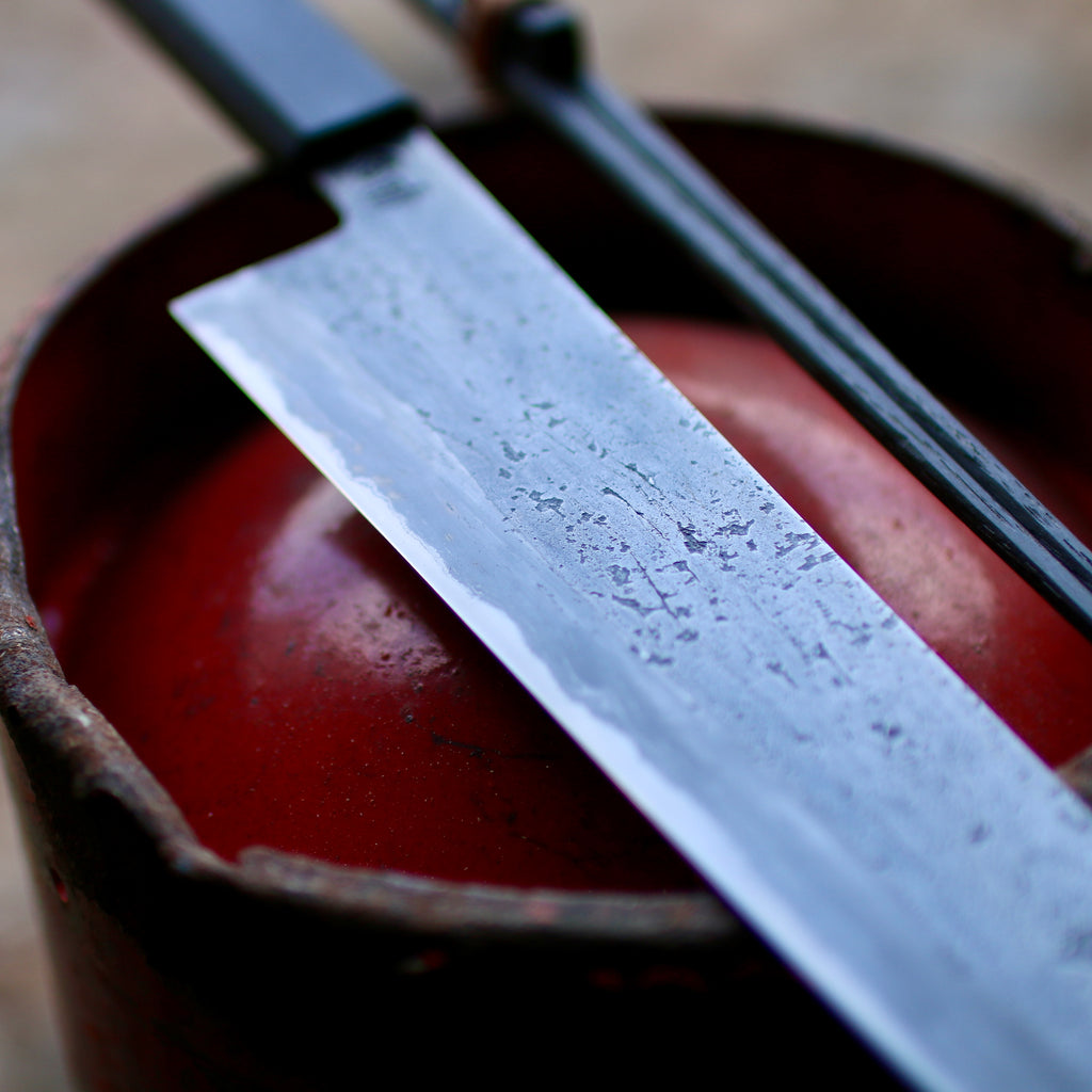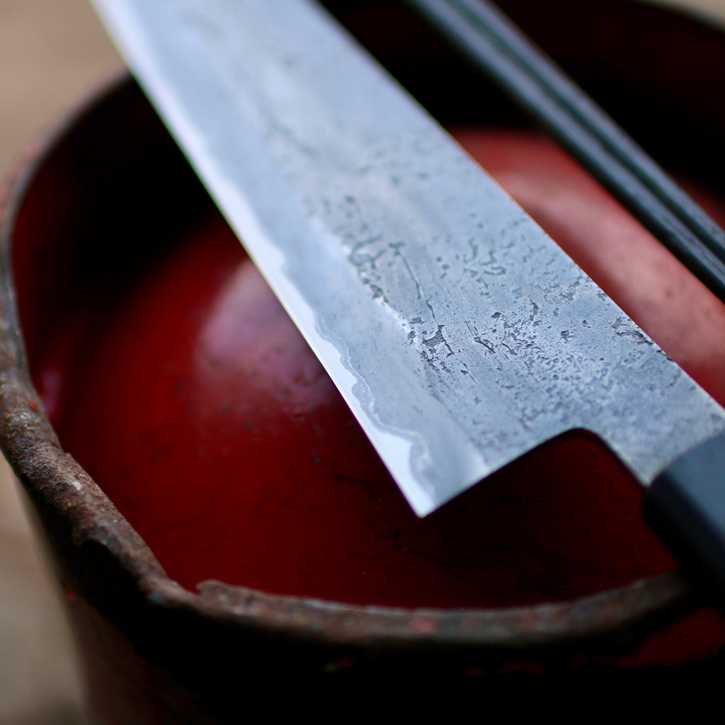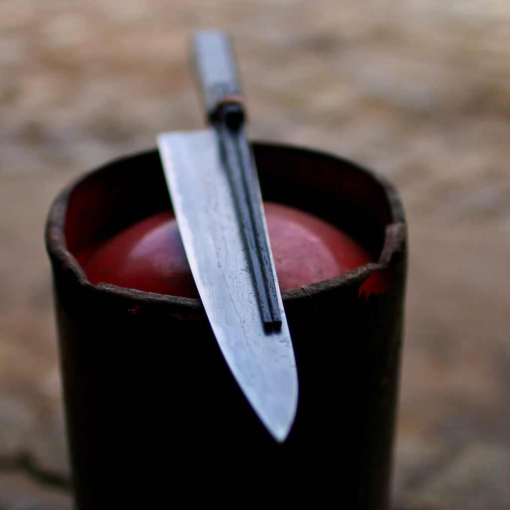 When stated, my knives bevels are ground and polished with Japanese whetstones. This allow an easy maintenance at home. For Sharpening service please contact Scott from www.sheffieldknifesharpening.com