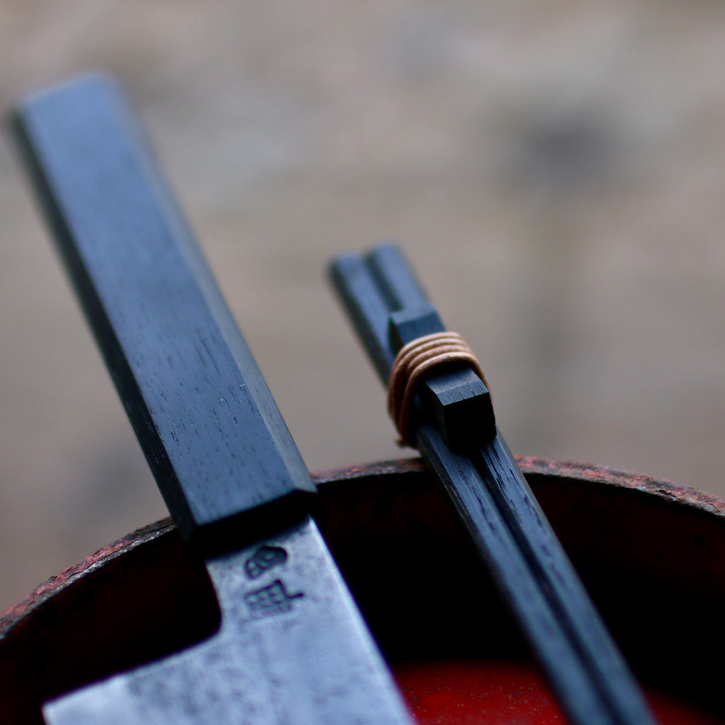 The knife come with a pair of handmade Bog Oak chopstick with Bog Oak rest.