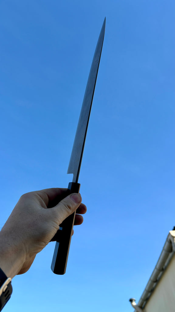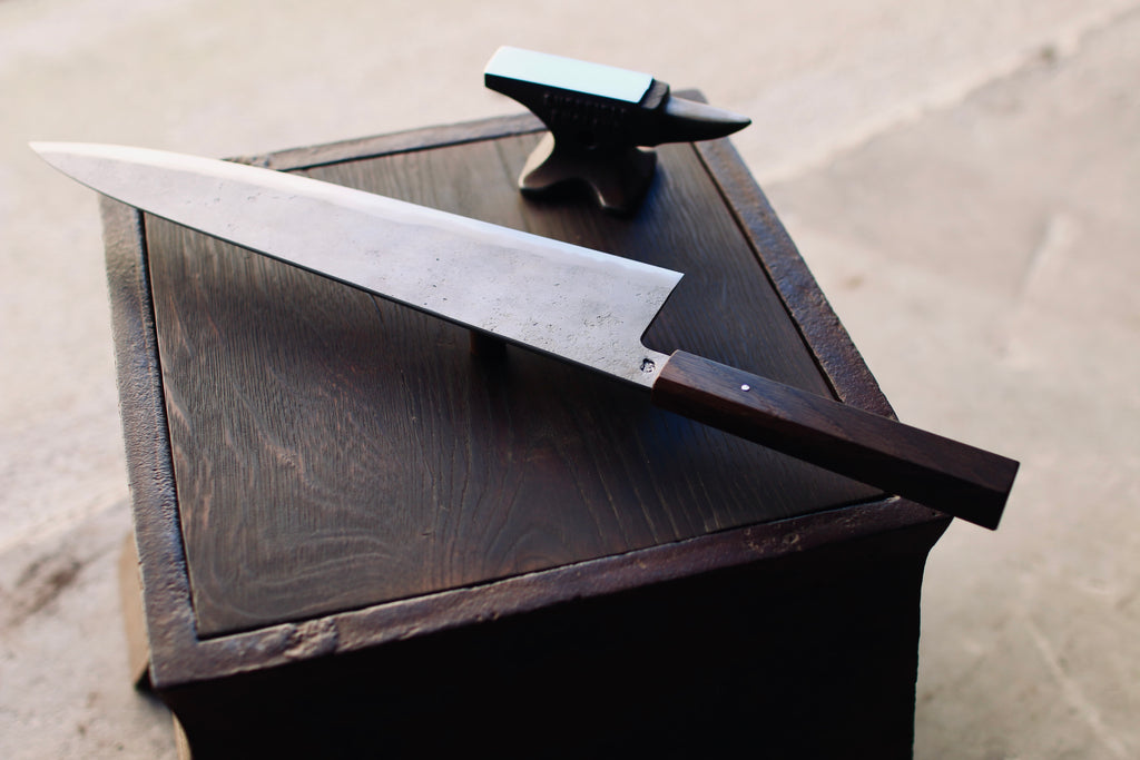 When stated, my knives bevels are ground and polished with Japanese whetstones. This allow an easy maintenance at home. For Sharpening service please contact Scott from www.sheffieldknifesharpening.com