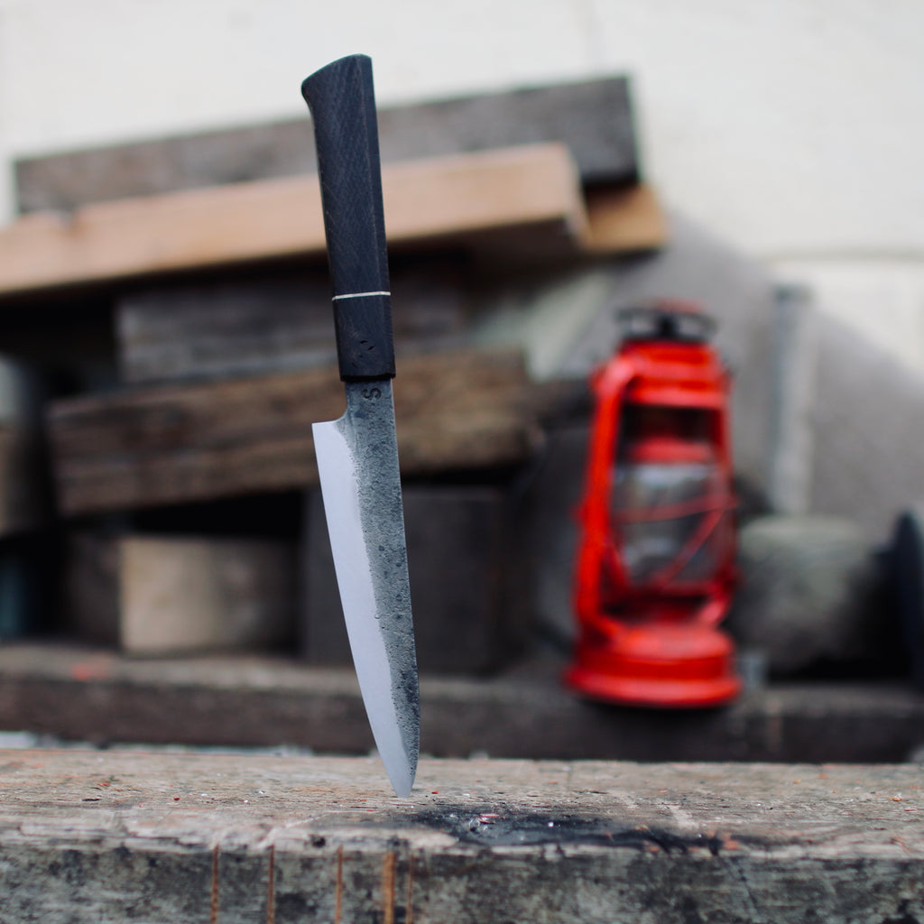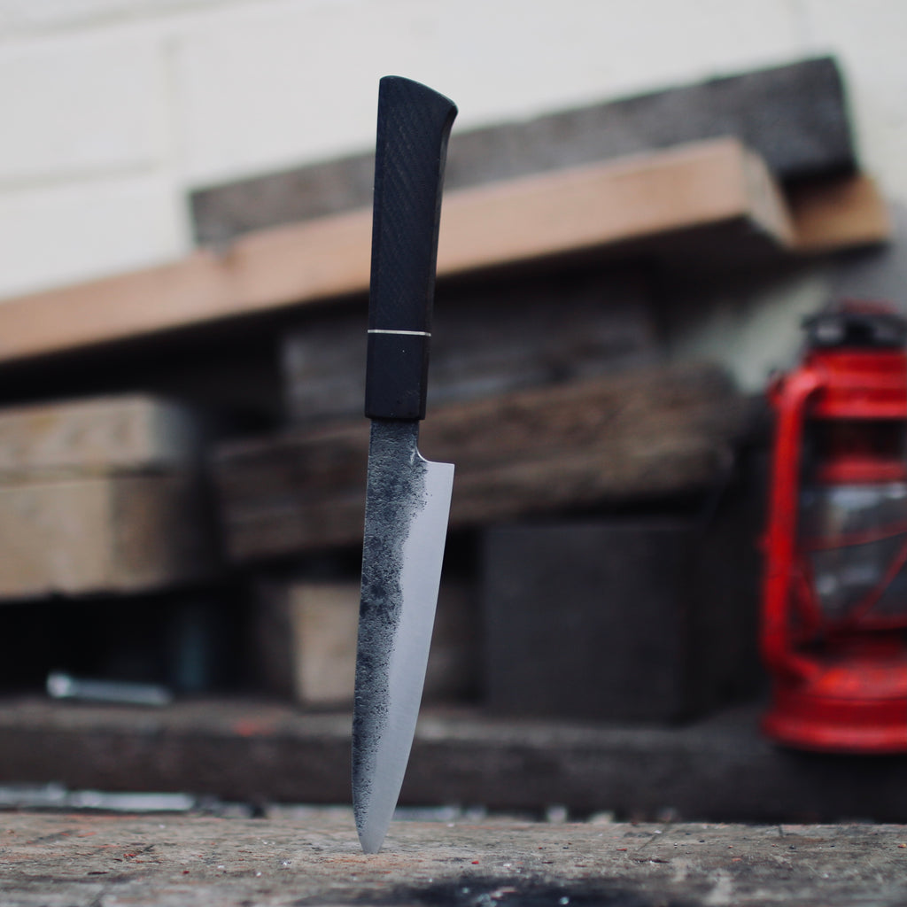 Honesuki 145x31mm, Monosteel hand forged in Sheffield from 115CrV3 high carbon steel.