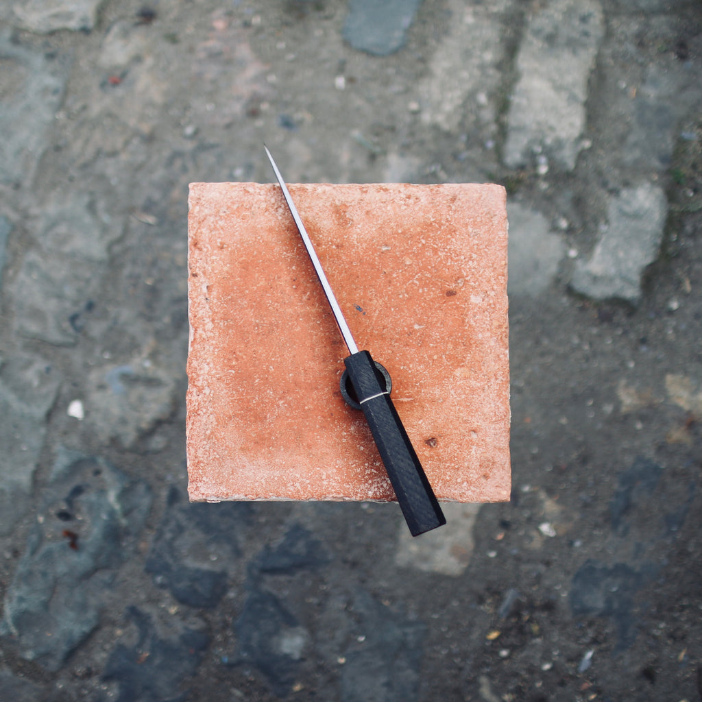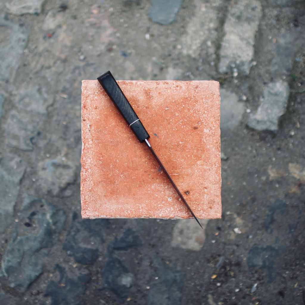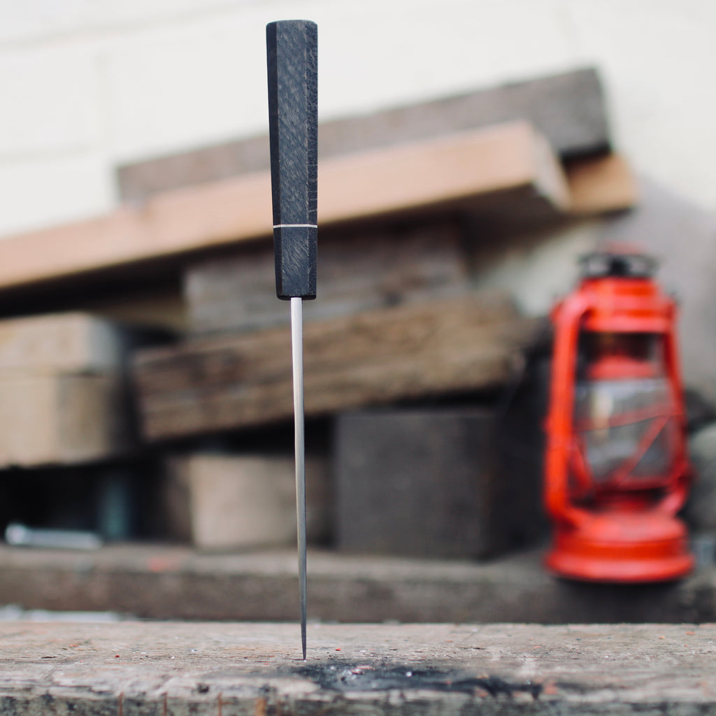 Hybrid (Wa and bird beak) handle made from Ebonised English Oak and white G10 spacer (Quercus robur), 125mm length.
