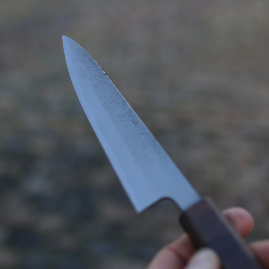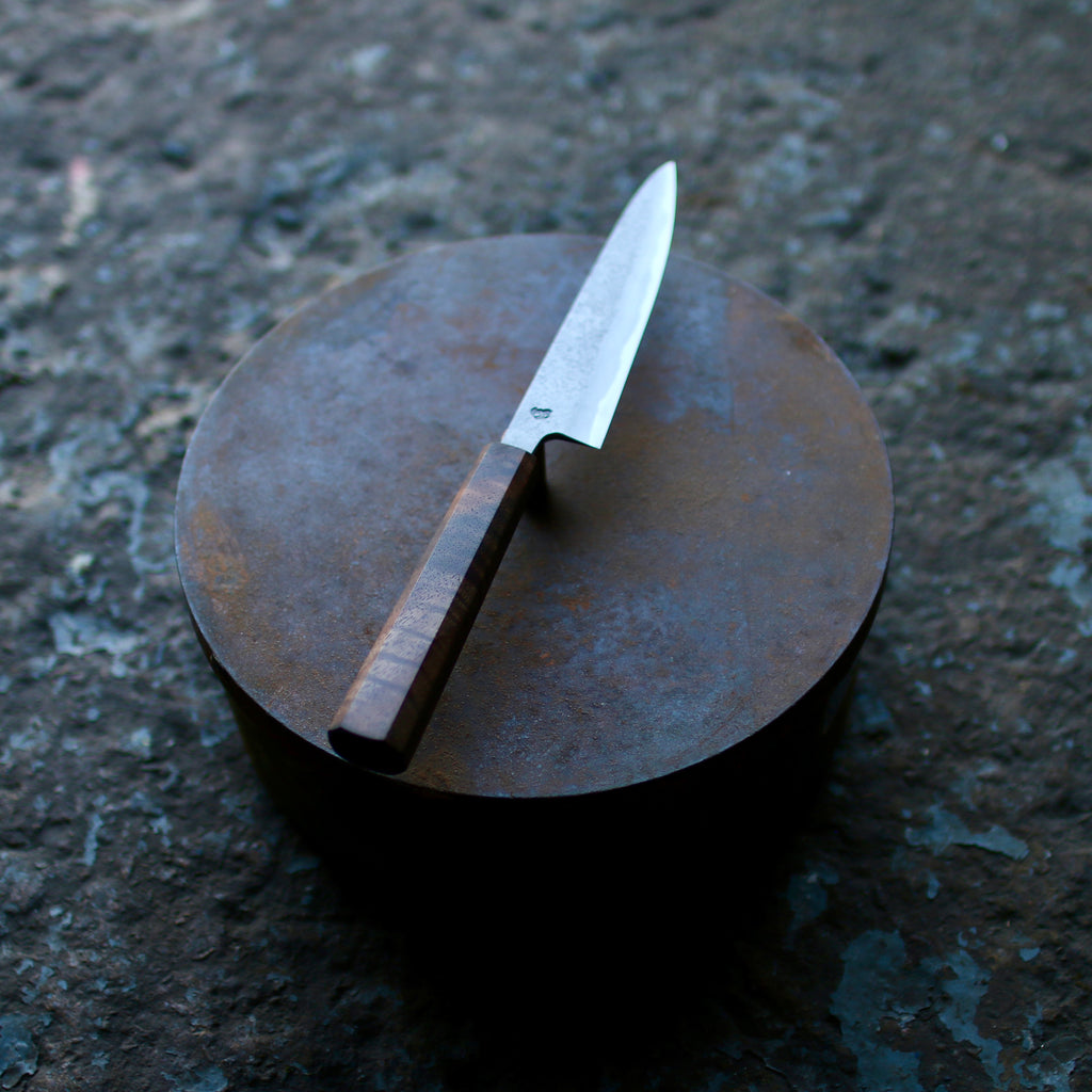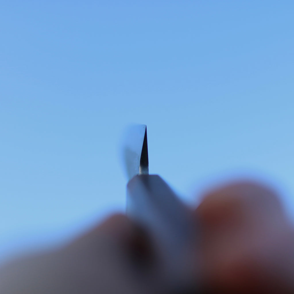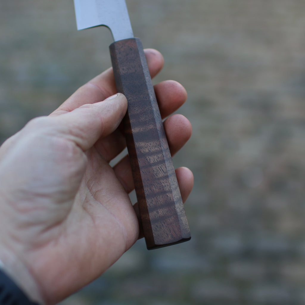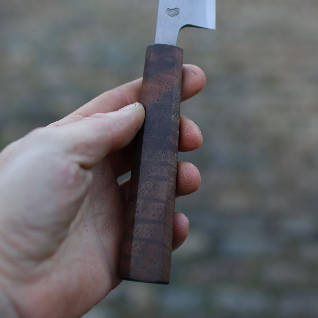 When stated, my knives bevels are ground and polished with Japanese whetstones. This allow an easy maintenance at home. For Sharpening service please contact Scott from www.sheffieldknifesharpening.com
