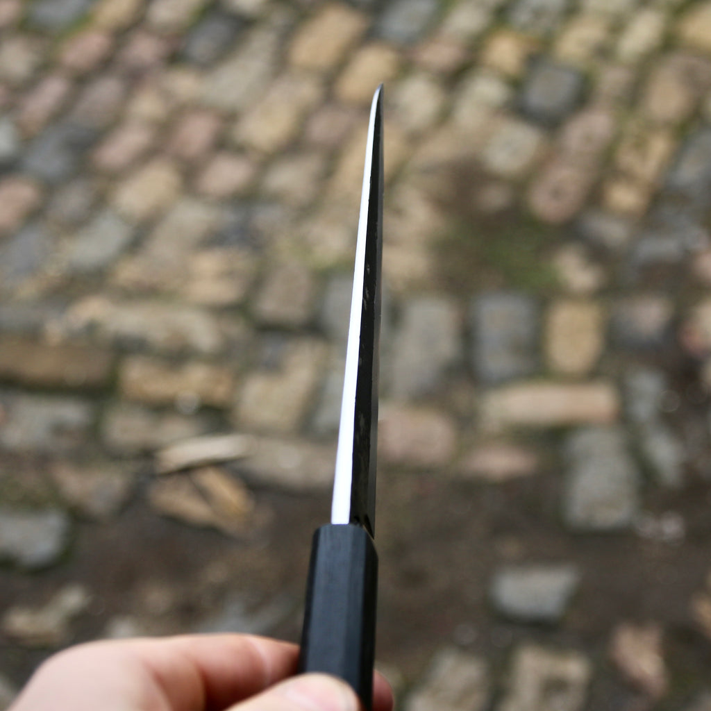 The knife's bevels are ground using whetstones. This allow an easy maintenance at home. For Sharpening service please contact Scott from www.sheffieldknifesharpening.com