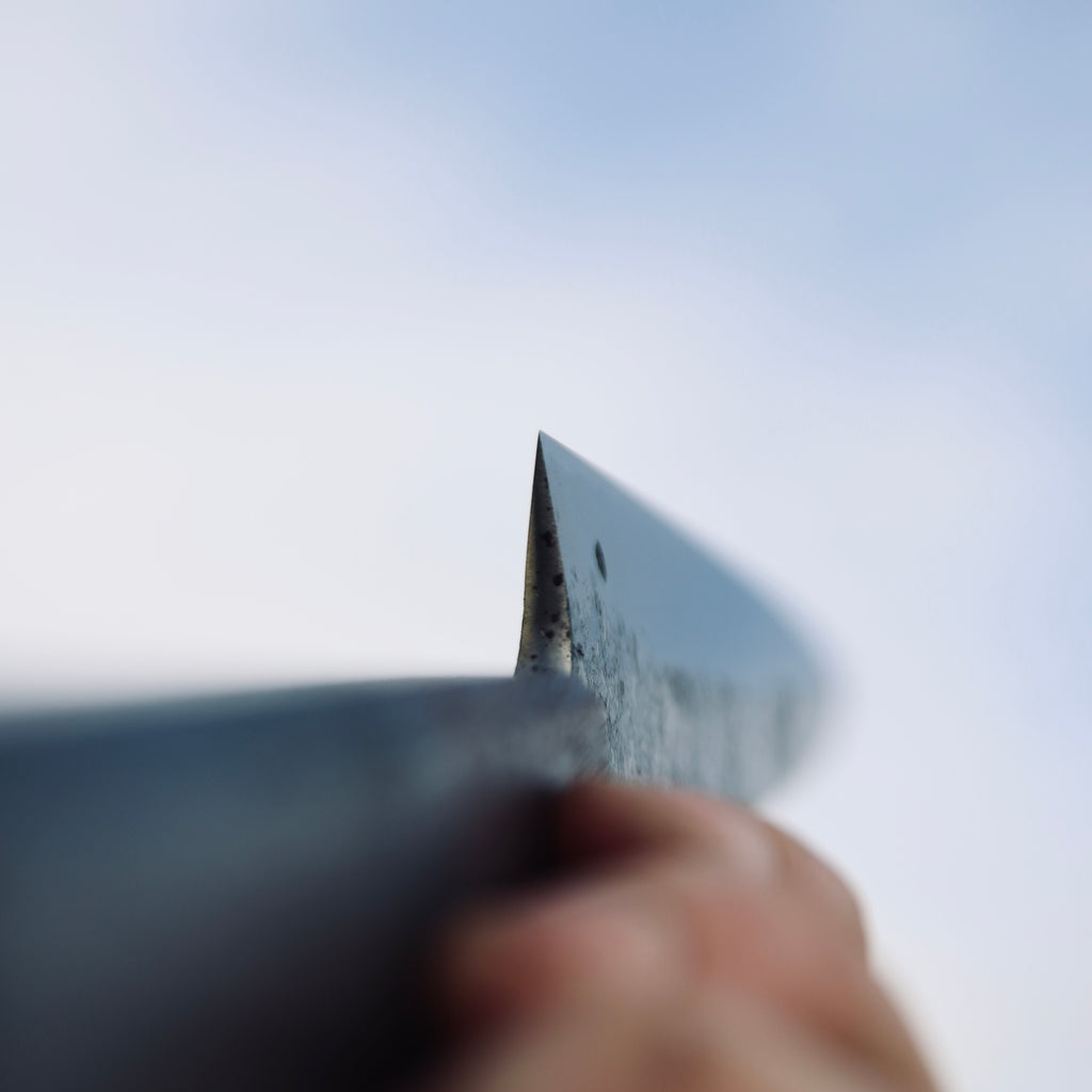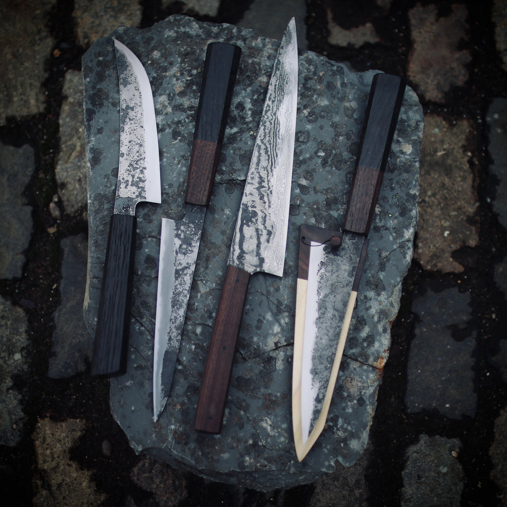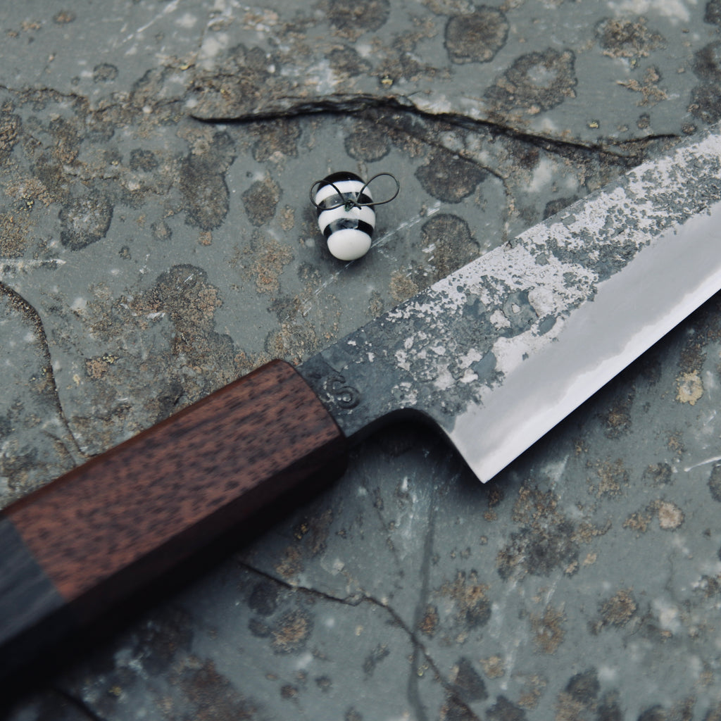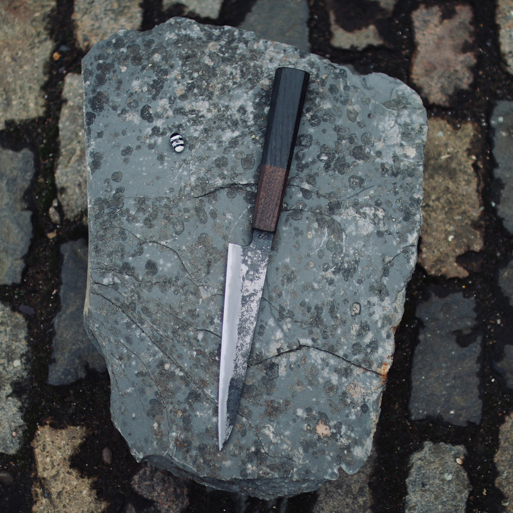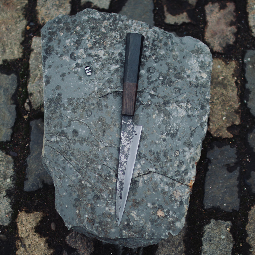 Kurouchi blade, flat double bevel with Kasumi finish.