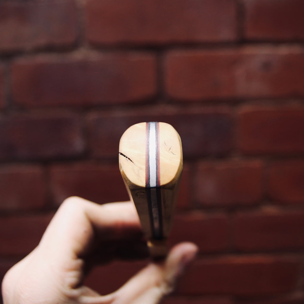 Box wood handle with leather spacer (buxus sempervirens), 75mm