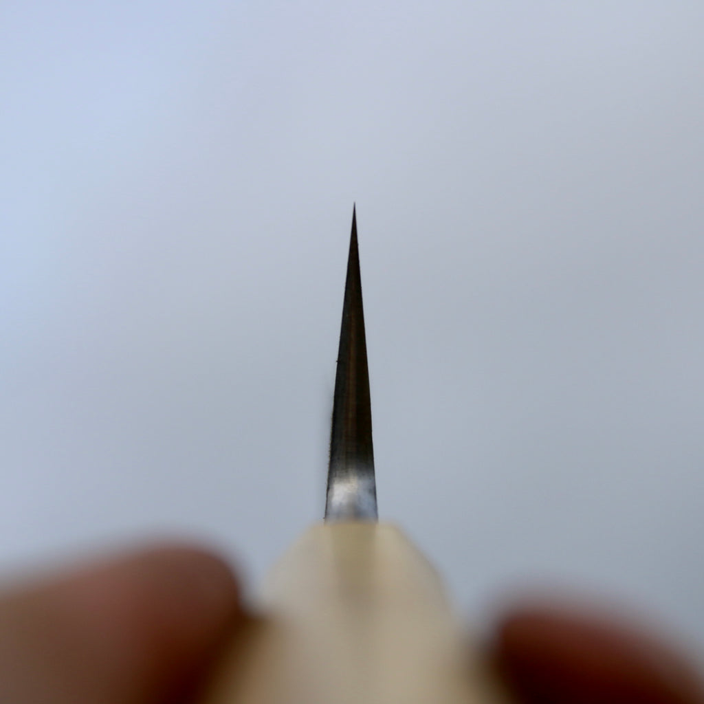 The knife's bevels are ground using whetstones. This allow an easy maintenance at home. For Sharpening service please contact Scott from www.sheffieldknifesharpening.com