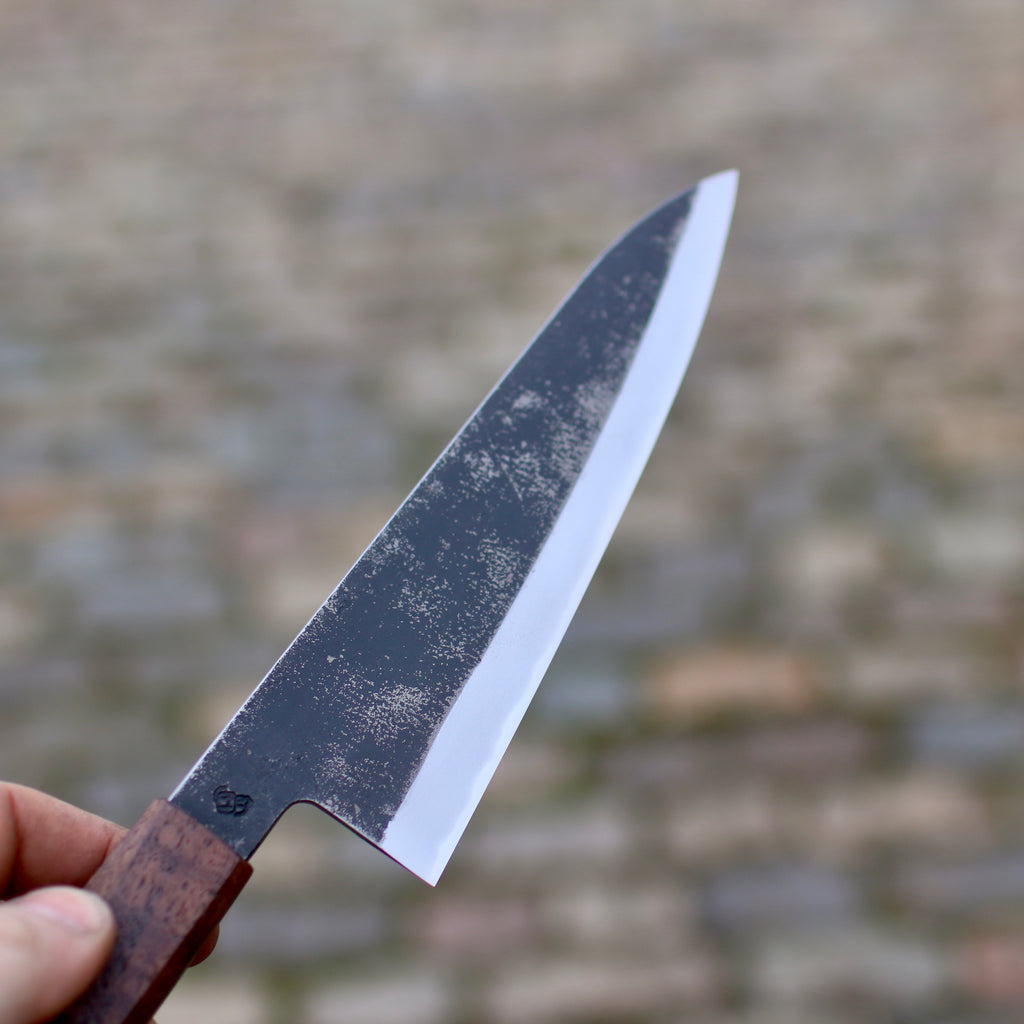 When stated, my knives bevels are ground and polished with Japanese whetstones. This allow an easy maintenance at home. For Sharpening service please contact Scott from www.sheffieldknifesharpening.com