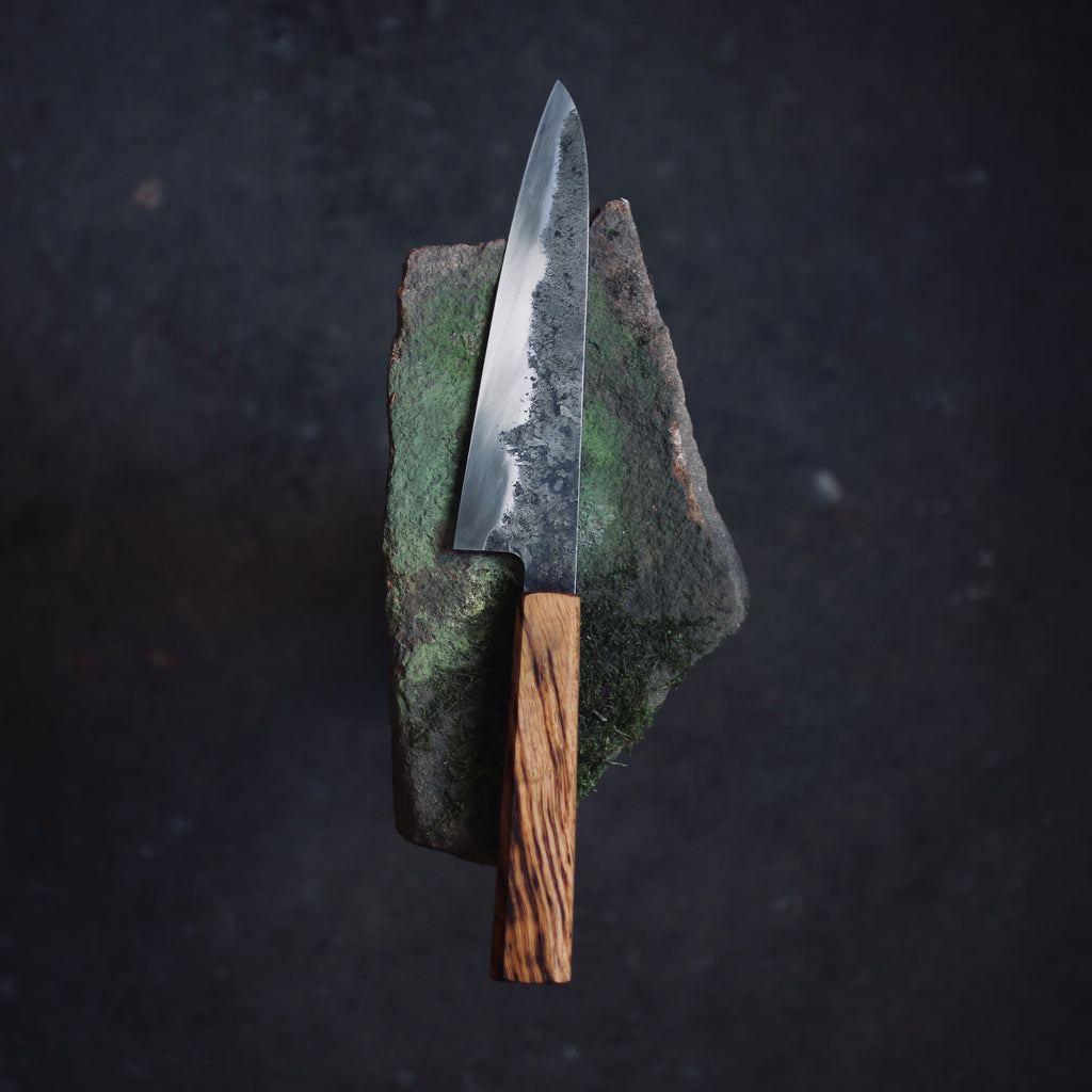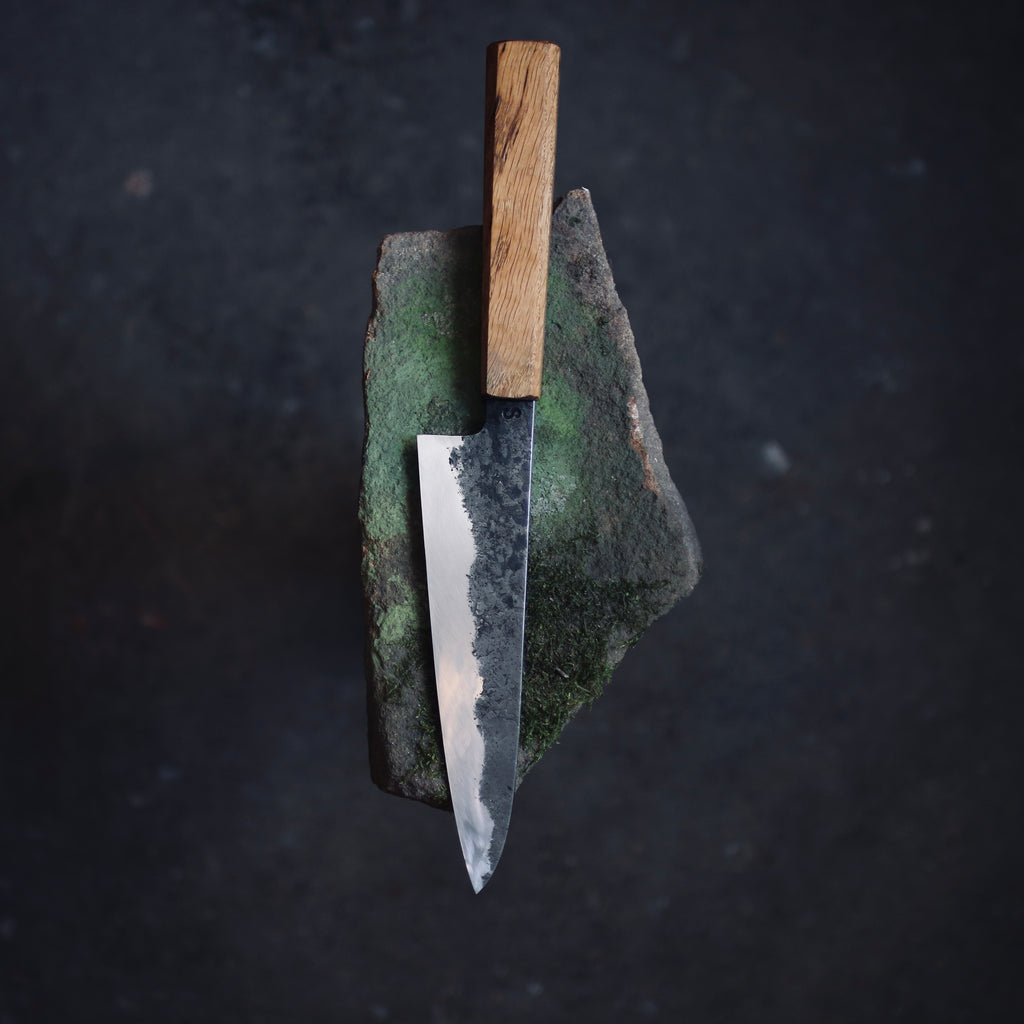 Ko-Gyuto 185x45mm, Monosteel hand forged from 1.2210 steel in Sheffield. Water quenched (63HRC). "Ko" mean small in Japanese.