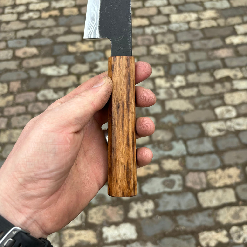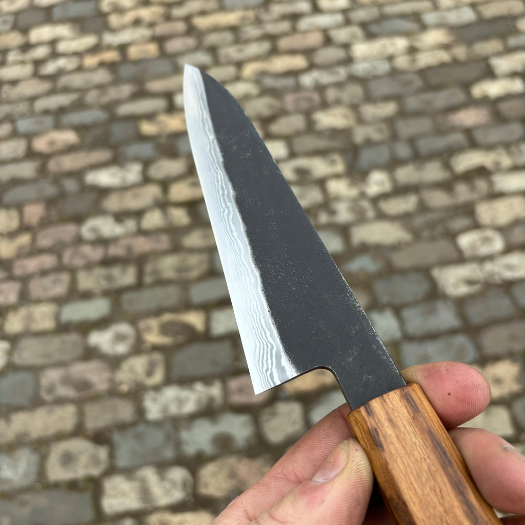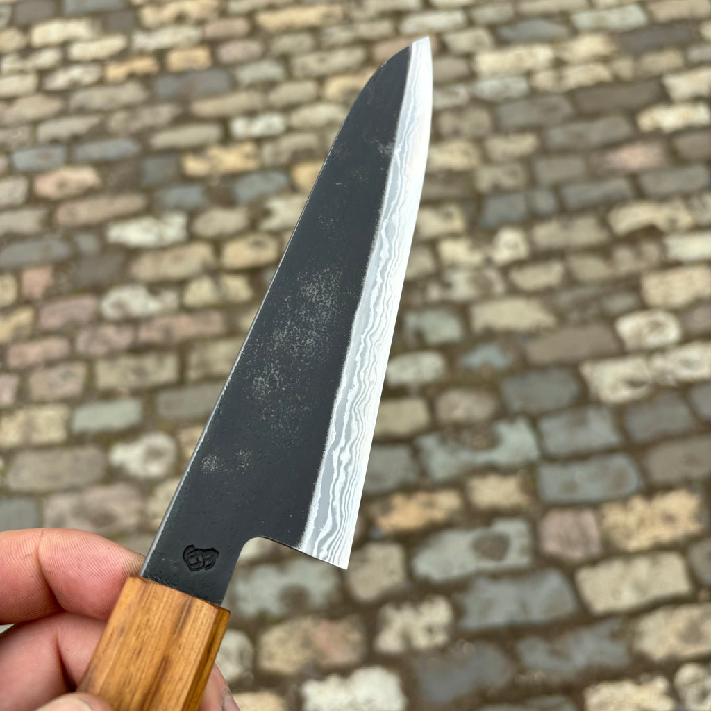 When stated, my knives bevels are ground and polished with Japanese whetstones. This allow an easy maintenance at home. For Sharpening service please contact Scott from www.sheffieldknifesharpening.com