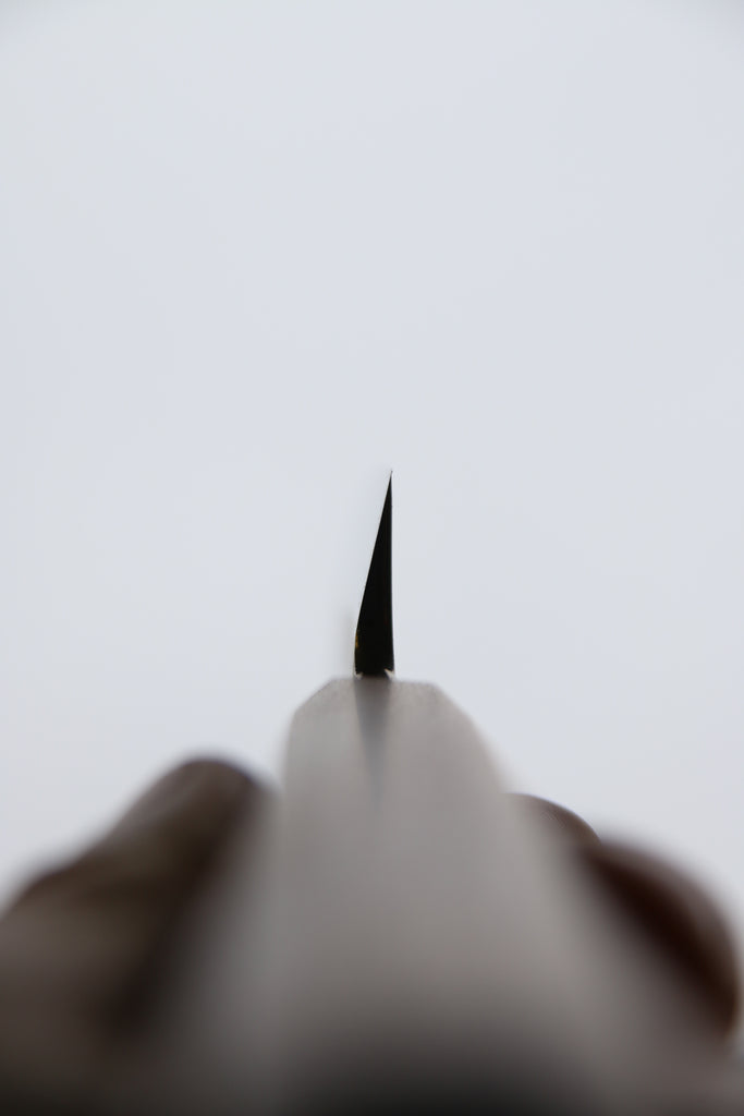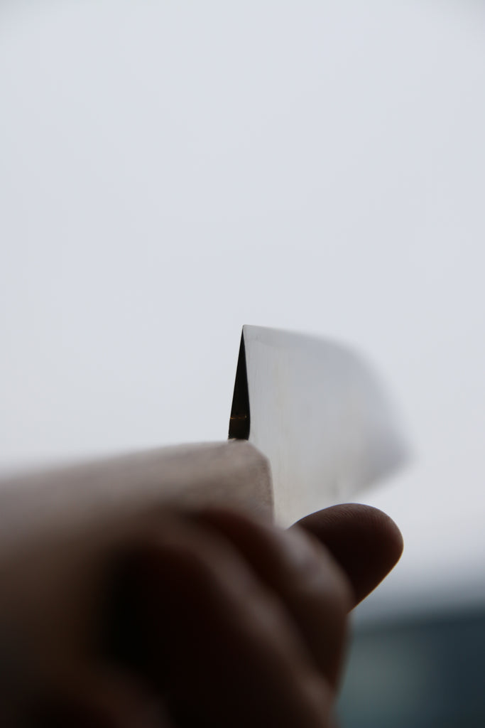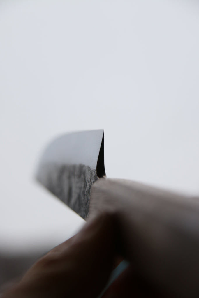 Mailletoshi is a blade inspired by the famous Munetoshi butcher. Single bevel with a slight hollow urasuki. Very thick blade with distal taper.
