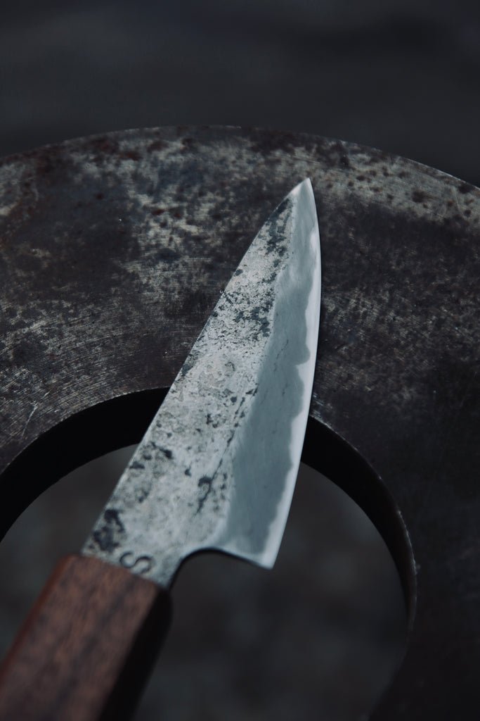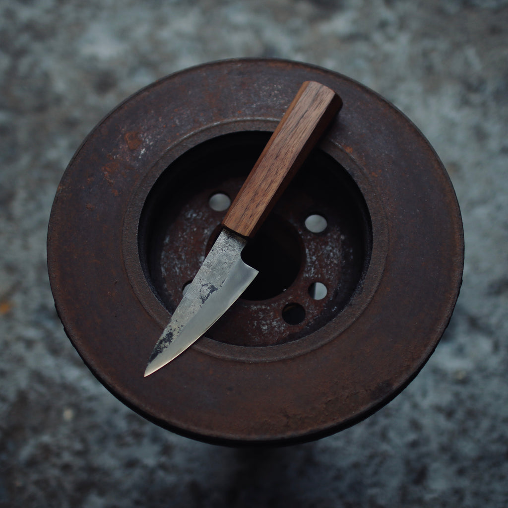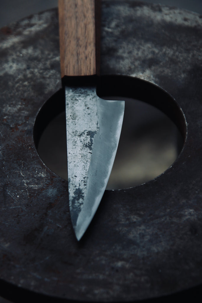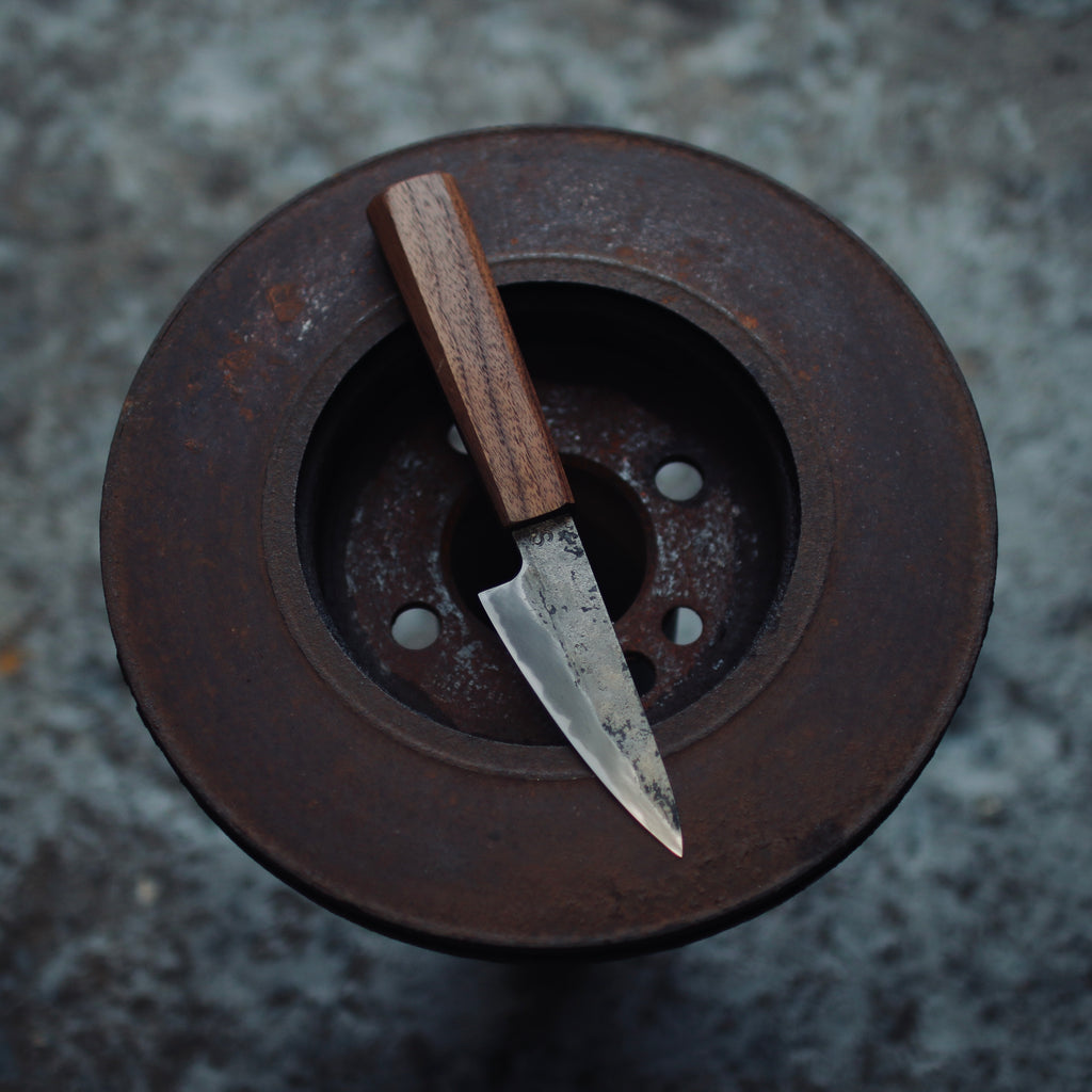 Petty 100x35mm, San-maï hand forged from 135Cr3 high carbon steel core and historic wrought iron cladding in Sheffield.