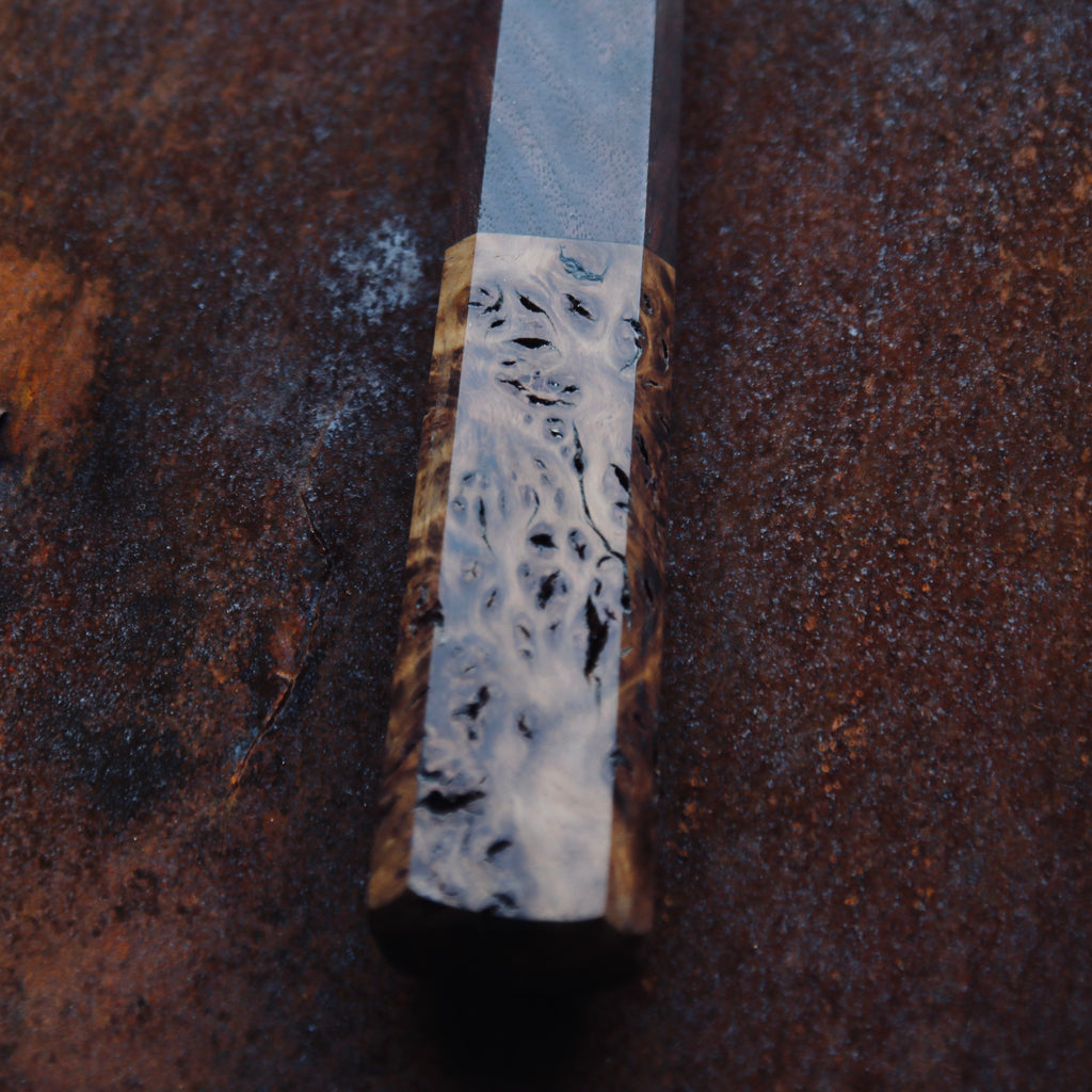 Wa handle made from Burl Oak (unstabilised) and black walnut 125mm length.