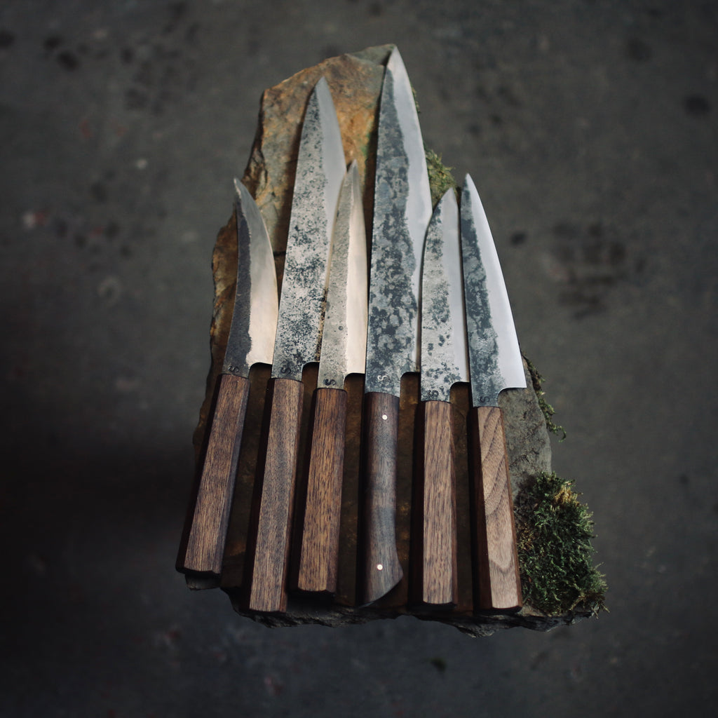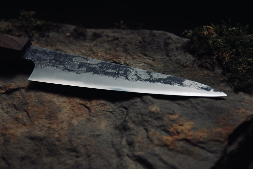 Petty 152x37mm, San Maï hand forged from 135Cr3 Core and Soft steel clad in Sheffield. Water quenched (63HRC)