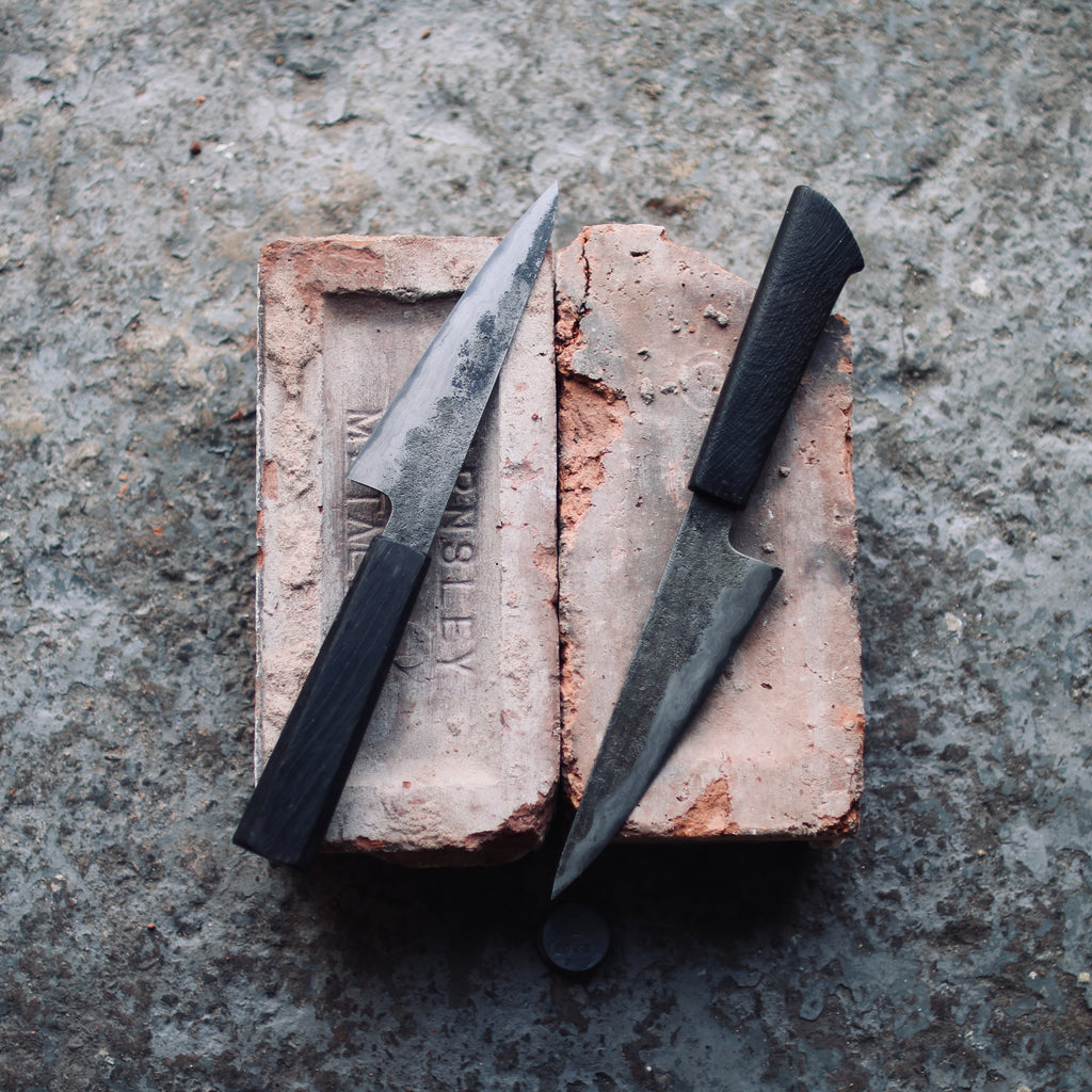Petty 150x42mm, San-maï hand forged from 26C3 high carbon steel core and wrought iron cladding in Sheffield.