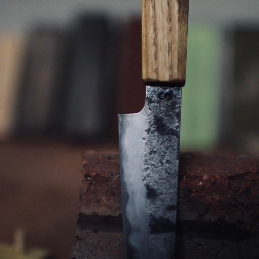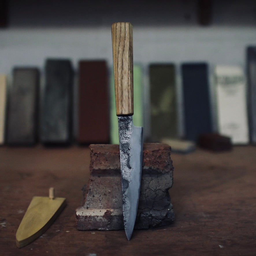 Petty 150x35mm, San Maï hand forged in Sheffield form 135Cr3 core and Iron clad. Carbon steel blade.