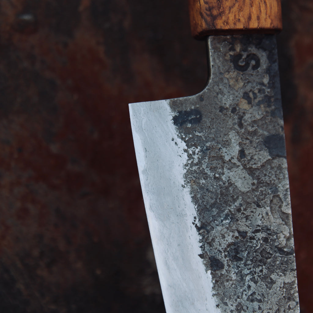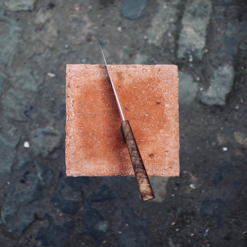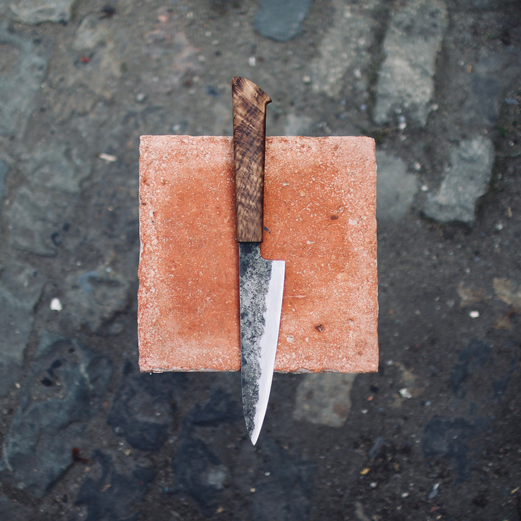 Petty 125x30mm, San Maï hand forged from 26c3 high carbon steel core and local historic wrought iron clad in Sheffield
