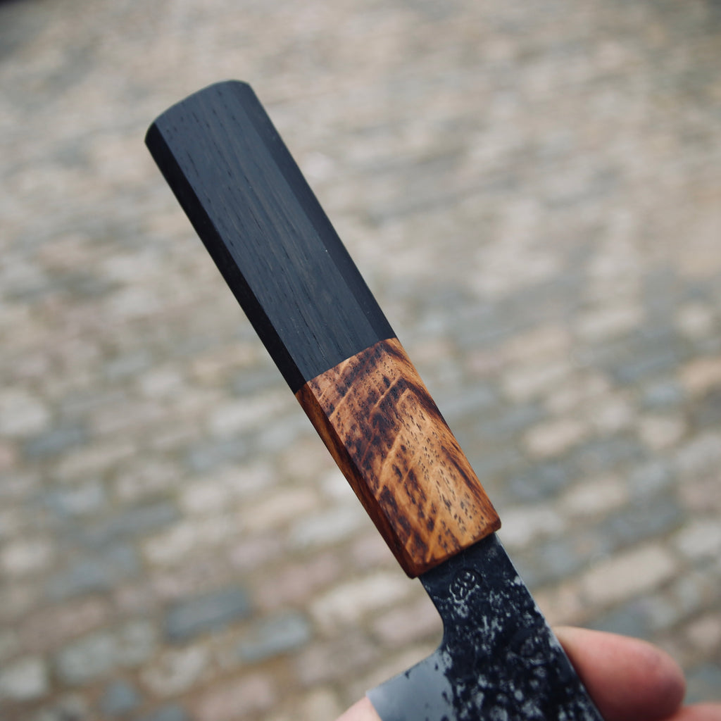 Wa handle made from Bog Oak (UK, 3300BC) and brown English Oak 145mm length.