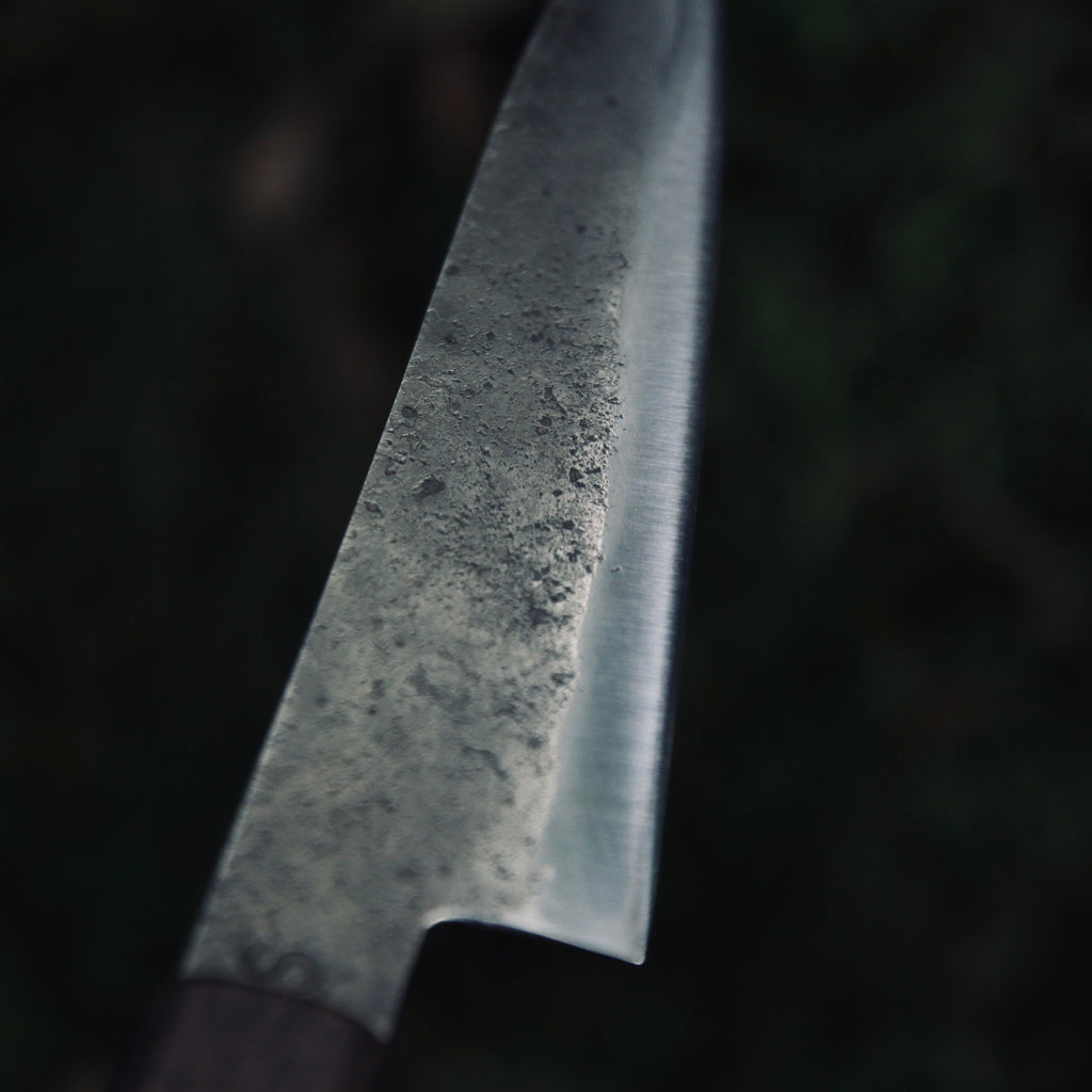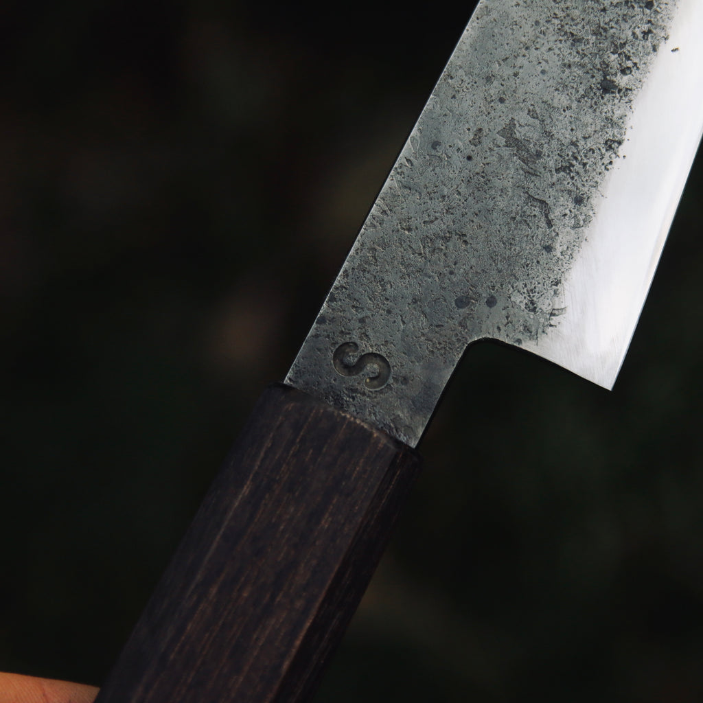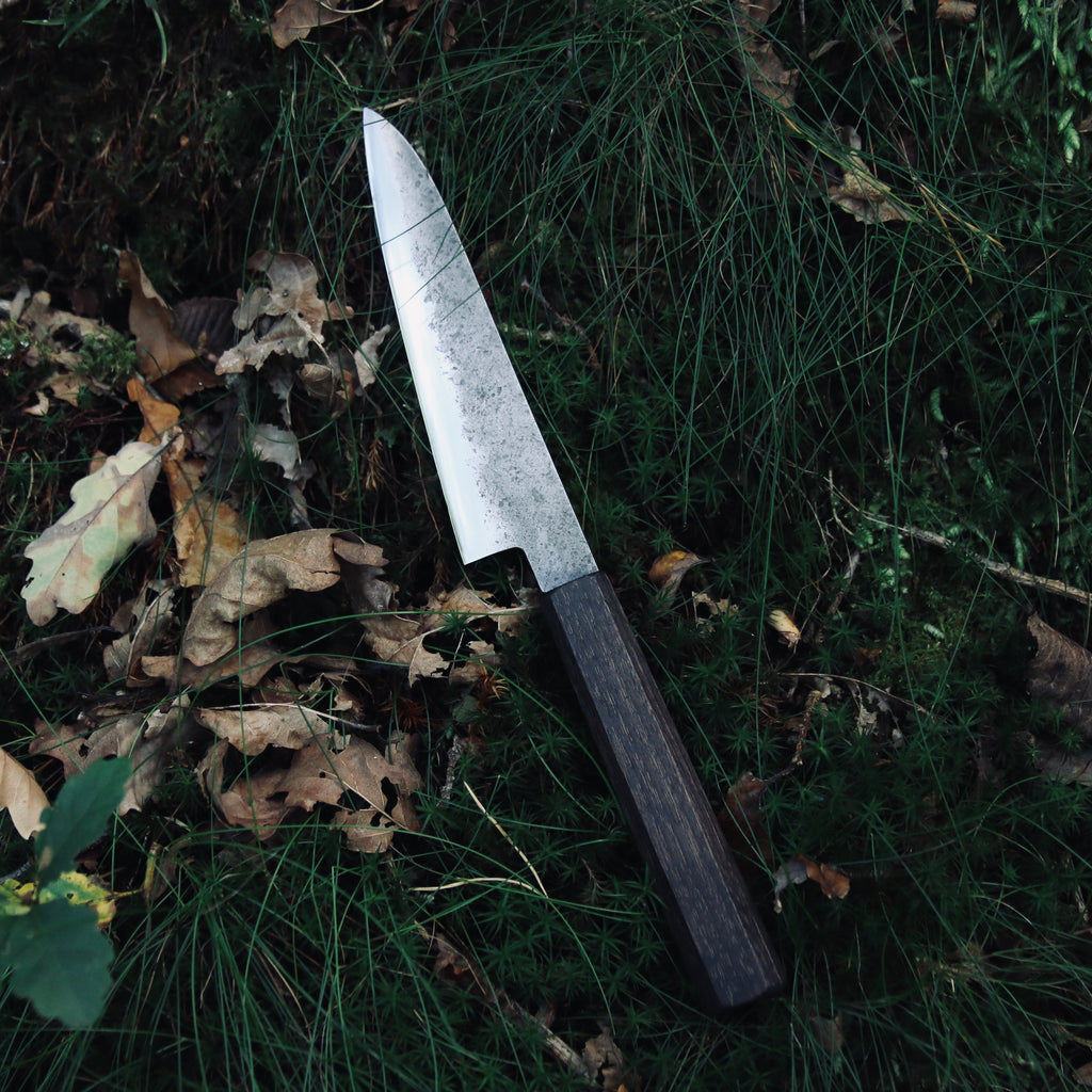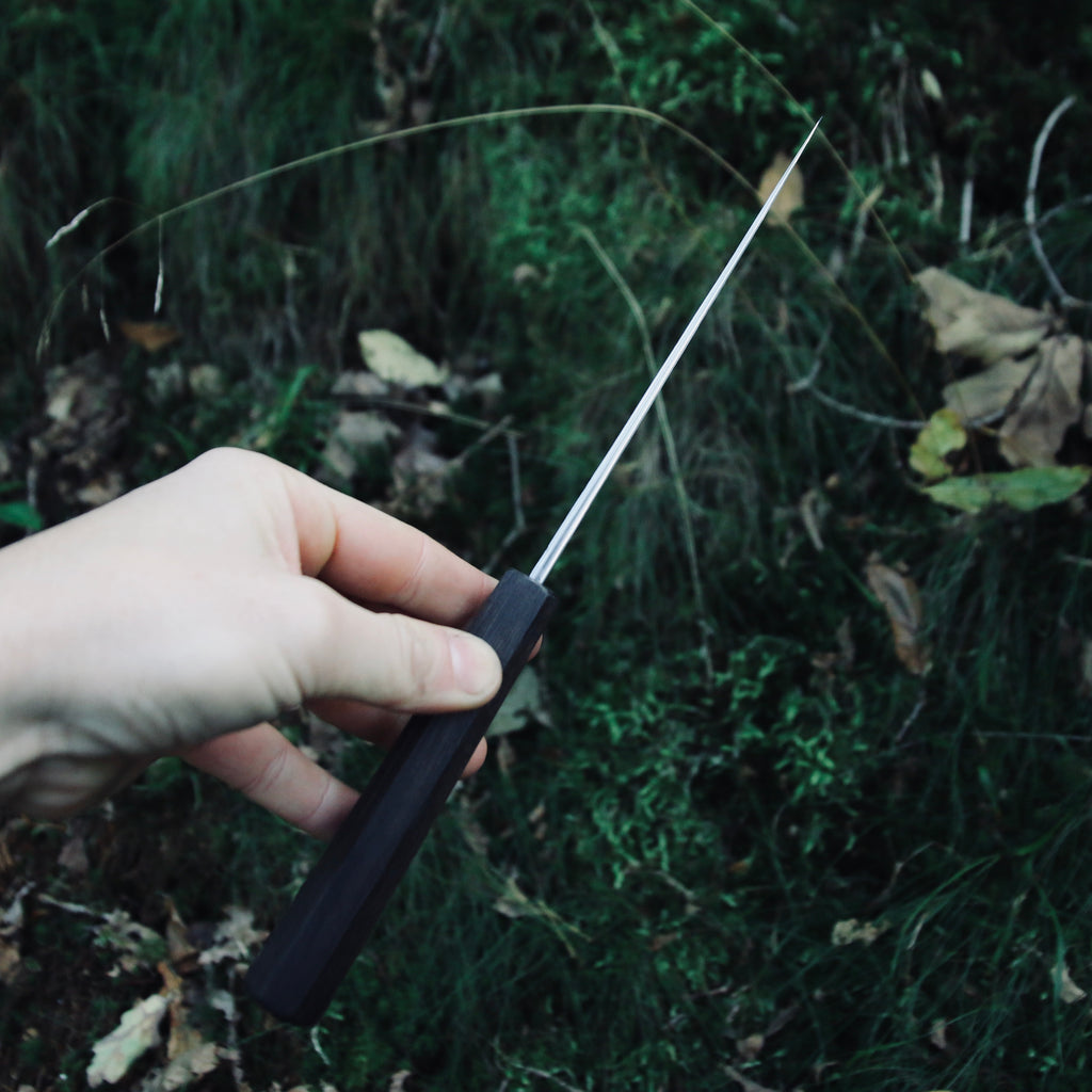 Kurouchi finish, double bevel, strong distal taper (from 4,5mm to 0,8mm).