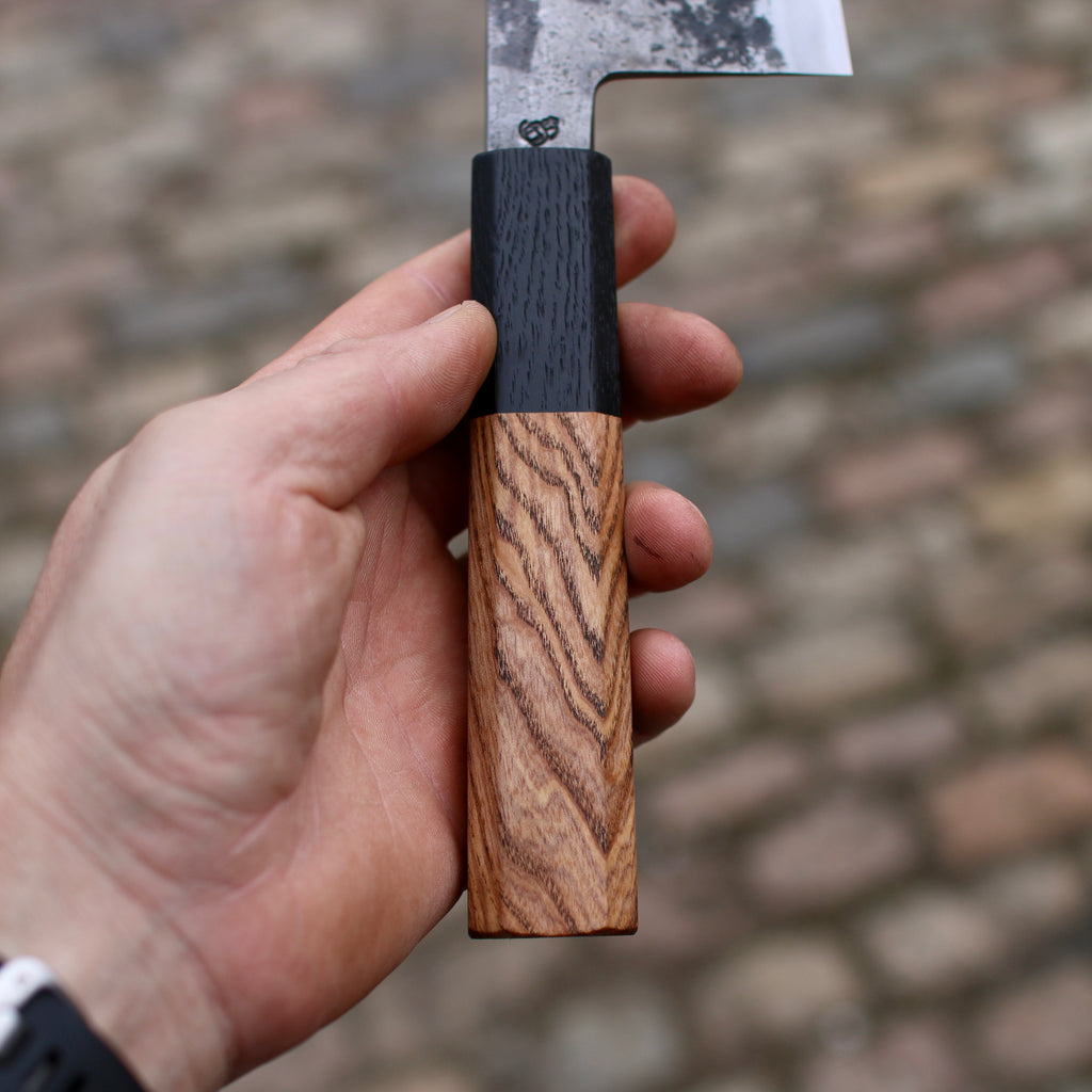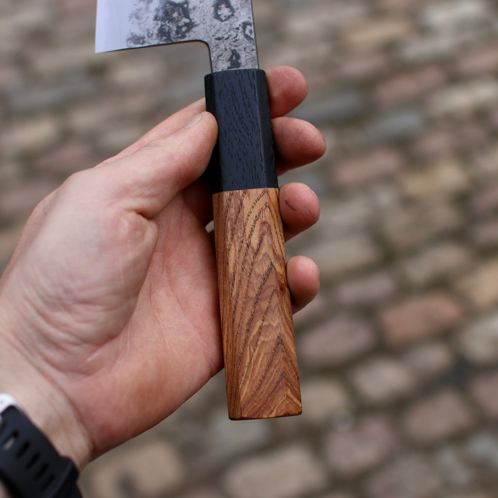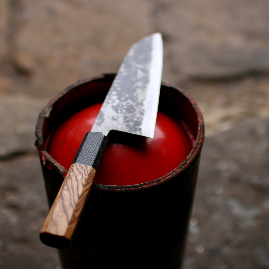When stated, my knives bevels are ground and polished with Japanese whetstones. This allow an easy maintenance at home. For Sharpening service please contact Scott from www.sheffieldknifesharpening.com